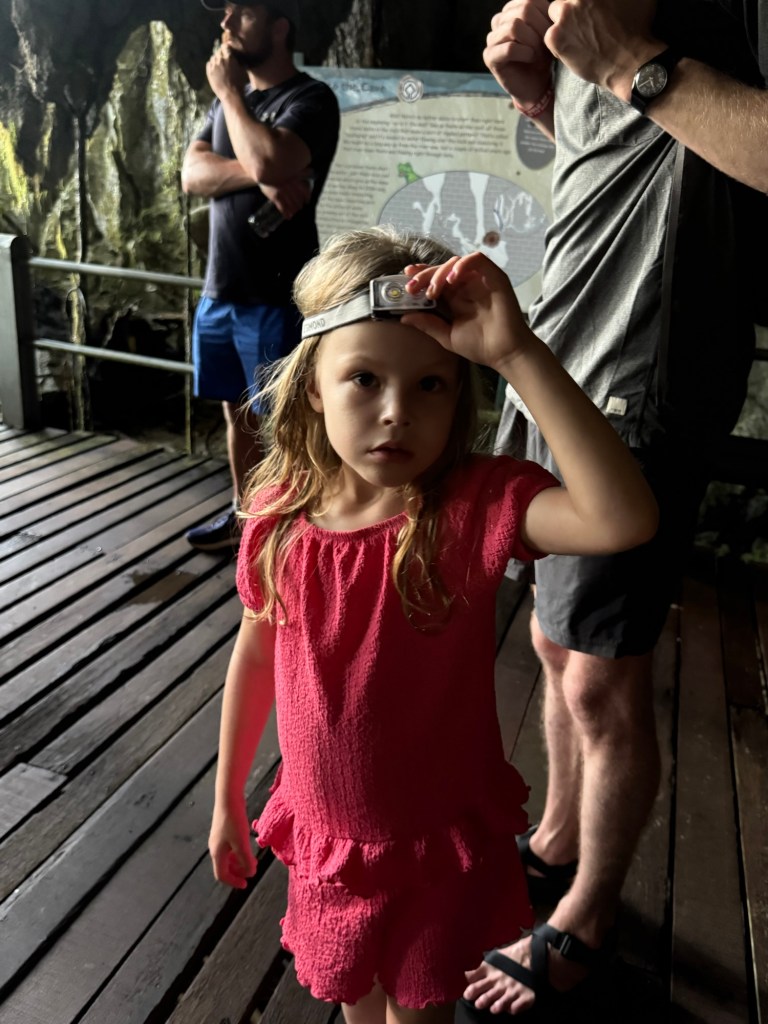 After spelunking through here, we rode up river a few minutes to Clearwater Cave. They are interconnected but inaccessible to non-cave-experts like us. To get to Clearwater Cave we had to climb many steps on the outside. We bribed Millie with cookies, which kind of worked but didn’t stop her from yelling “this is not interesting!!” while inside the cave. If you haven’t tried to calm down a child inside a cave while on a group tour with all adults, you’ve never lived.