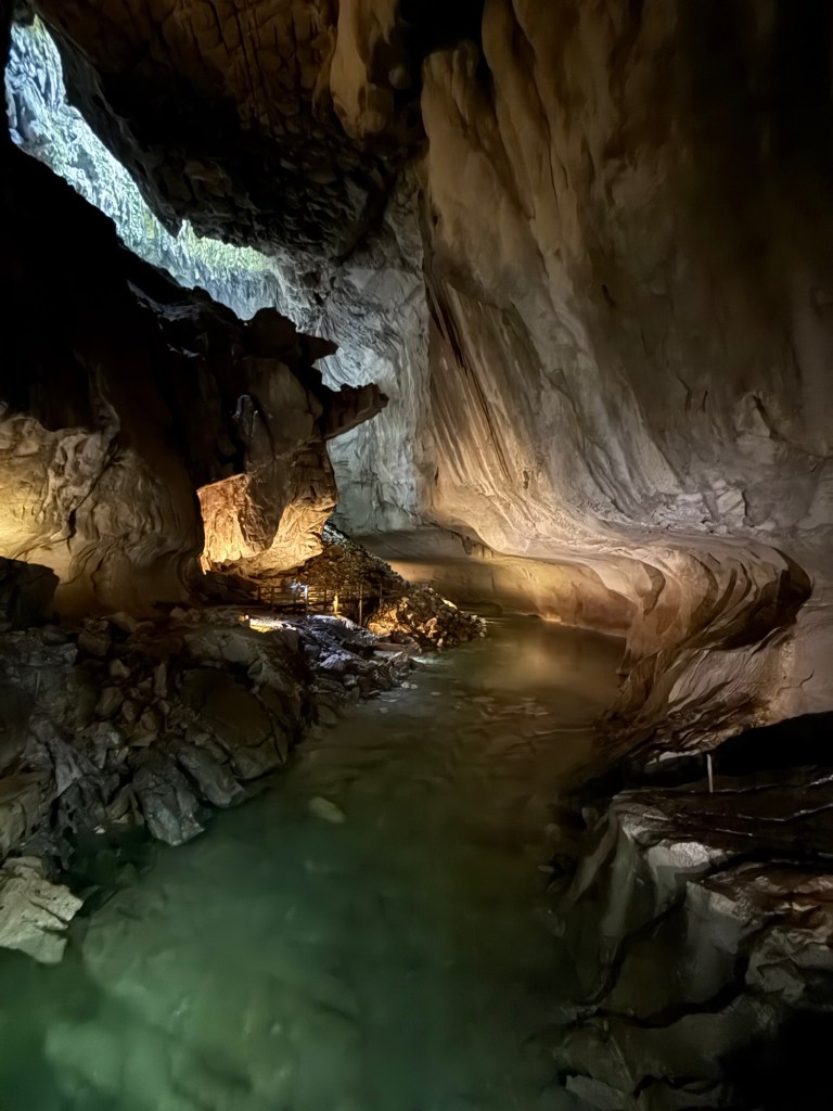 So she was right about the shoes, but wrong about the cave. It was very interesting. It was huge and had a river running rapidly through it. It has a few openings at the top where sunlight beamed in. Just so, so beautiful.