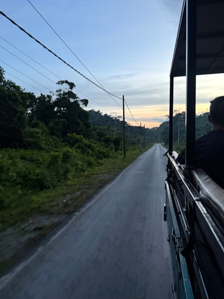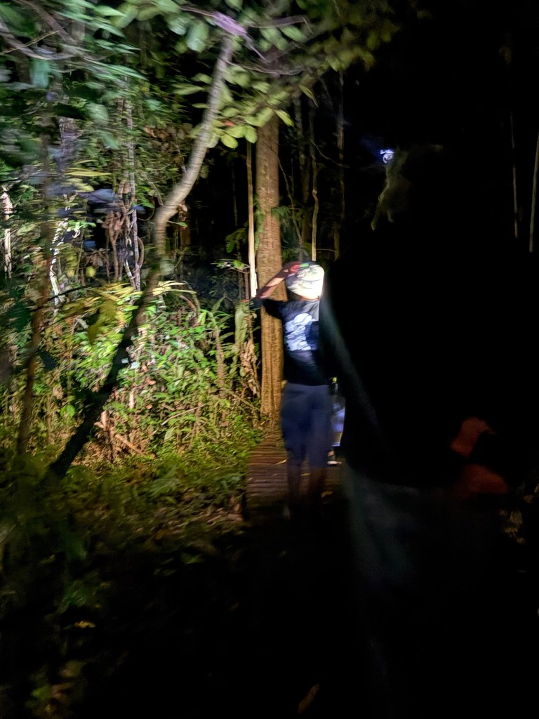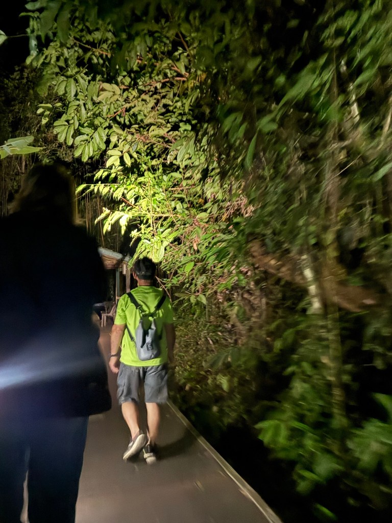 We waited and then set off at 7:30. It was pitch black and loud with frogs and insects. Millie felt nervous and I had to pretend I didn’t also feel a little scared.