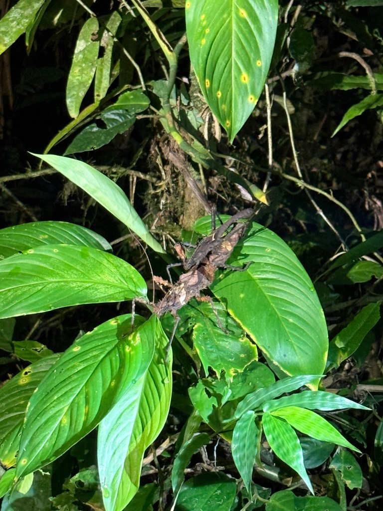 We saw lots of things: huge spiders with eyes that glittered and shined, stick bugs making love, leaf insects that made very loud noises, allegedly poisonous caterpillars, frogs, toads, mice.