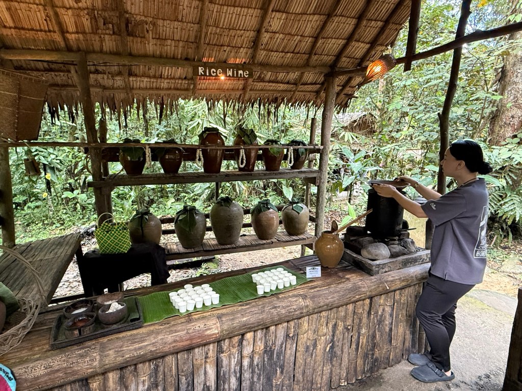 We learned how to make rice wine, and then how to distill it. It is mixed with tobacco leaves which made it spicy and delicious, but probably even more toxic than a homemade distilled liquor already is.
