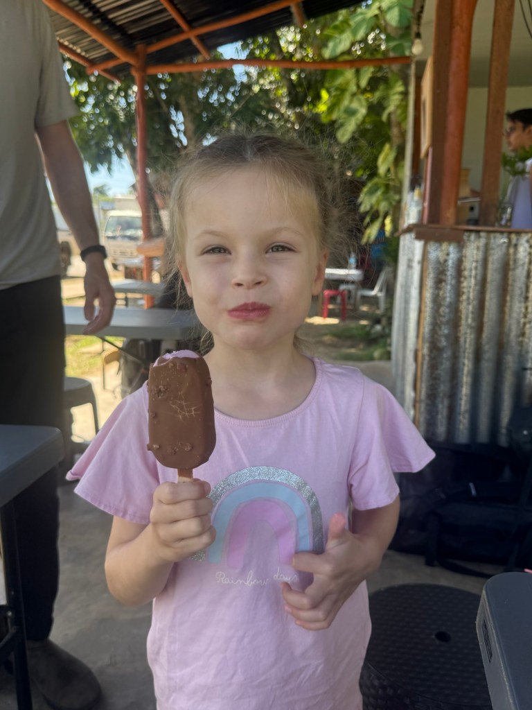 We were still in decent spirits despite the wait. Millie got her Friday ice cream from the little shop next door.