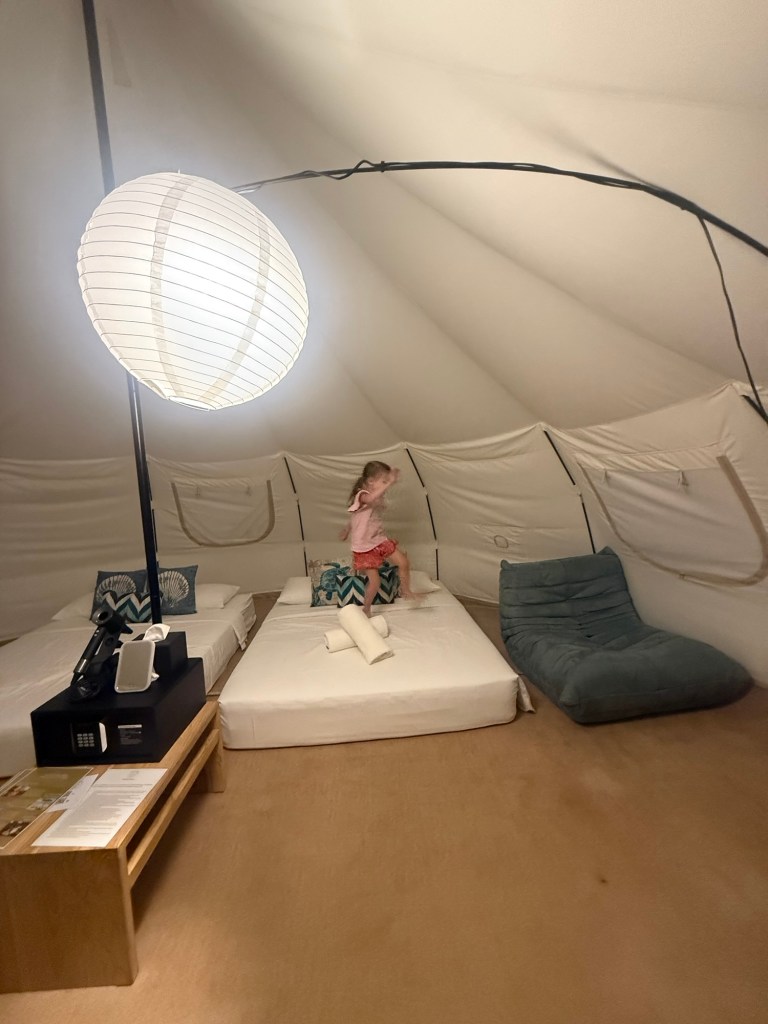 We made it, barely. We are “glamping” on the beach. The worst part about glamping is having to use the word glamping.
