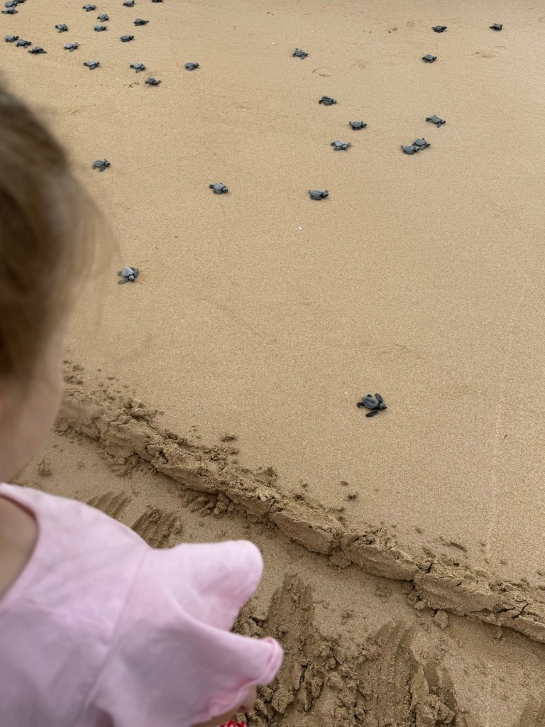During breakfast a waiter announced that there were a bunch of baby turtles heading to the sea. Everyone abandoned their plates and ran towards the shore. We watched as the tiny turtles pushed themselves towards the waves and then washed themselves away into the tide. Newborns are magical, no matter the species.
