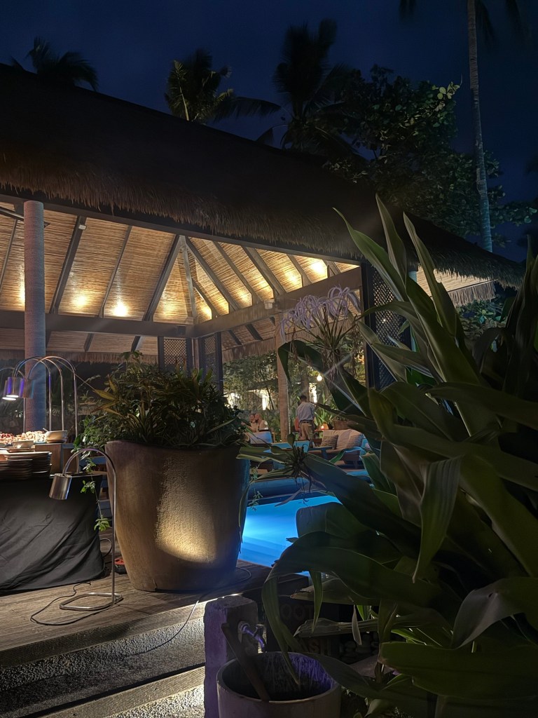 We showered and read a bit in the tent, and then walked down the beach to have dinner at the fancy resort next door.