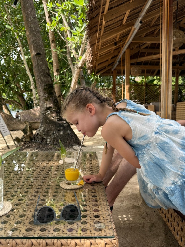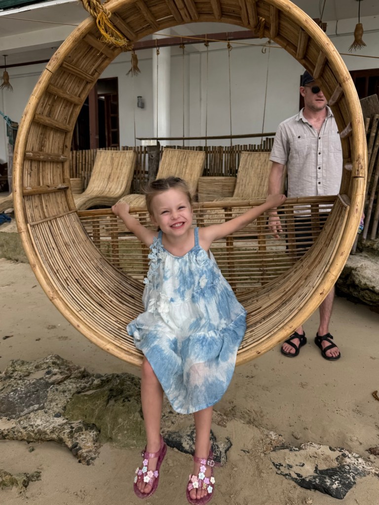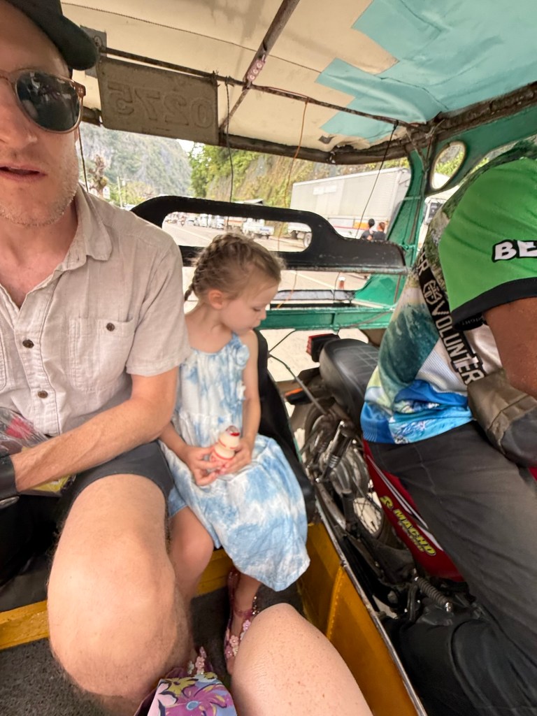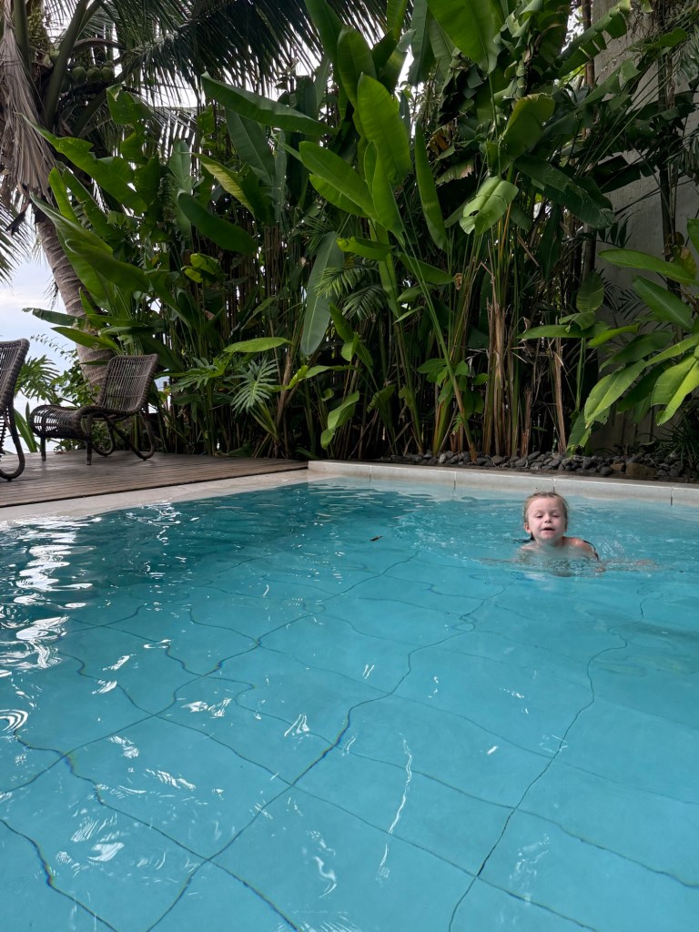We had to transfer from our glamping hotel to a new one. The downside of booking everything last minute is that it’s hard to find a decent place for longer than a couple of nights. We slept in, had breakfast, and packed up. Millie struggled with helping and whined / demanded we take her swimming. Finally we were packed up and had an hour to kill. We brought her to the pool but forgot her goggles, and this turned into a full fit. We had to carry her kicking and screaming to the beach so as to not disrupt the other vacationers trying to relax at the pool. Tantrums are always hard on us, but tantrums with witnesses are the worst. This set the tone for the day: one battle after another.