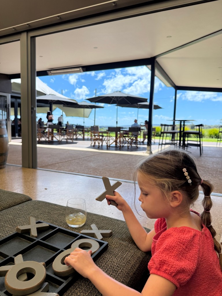 Our next stop was Wills Domain. We were looking forward to this one because we read that it had a playground, but when we arrived there were no kids and the playground was right next to a bunch of couples having their fancy valentines lunch dates. Despite it we had a nice time and ordered a delicious charcuterie plate. It had a beautiful view overlooking rolling hills of vineyards.