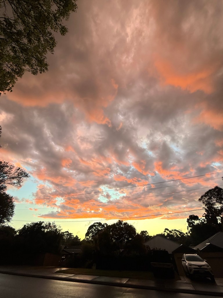We drove back to our Airbnb and at the very moment we stepped inside it started raining. Nick and Millie watched a movie together (Hook). I sat on the porch with my portion of the chocolate bar and a cup of tea, listening to the rain. It smelled like wet eucalyptus. Heaven. As the sun started to set I walked out on the driveway and took this photo of the clouds. Western Australia has stolen my heart.