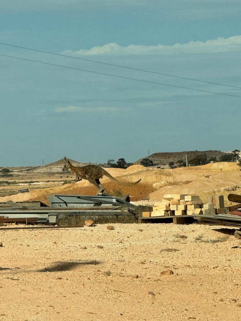 Again it was mostly nothingness, but we found a lot of excitement in the nothingness. We saw so many wild animals, most of which were still alive. The day started with a very exciting spotting, our first wild kangaroo! It was just a few blocks from our dugout house and jumping around on some old mining equipment. A dog came at it barking and it bolted across the road and into the bush. It was amazing—and terrifying—to see how fast it could move.
