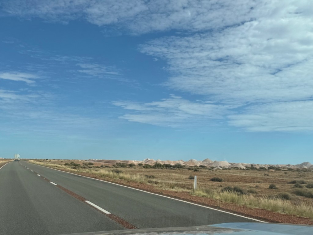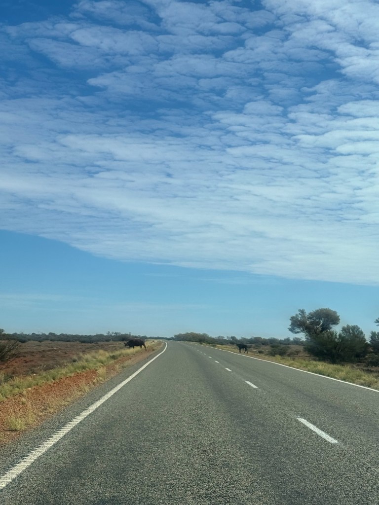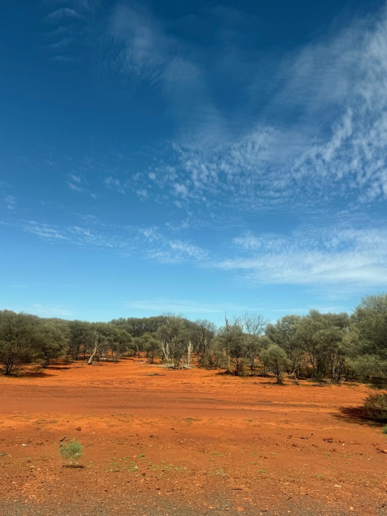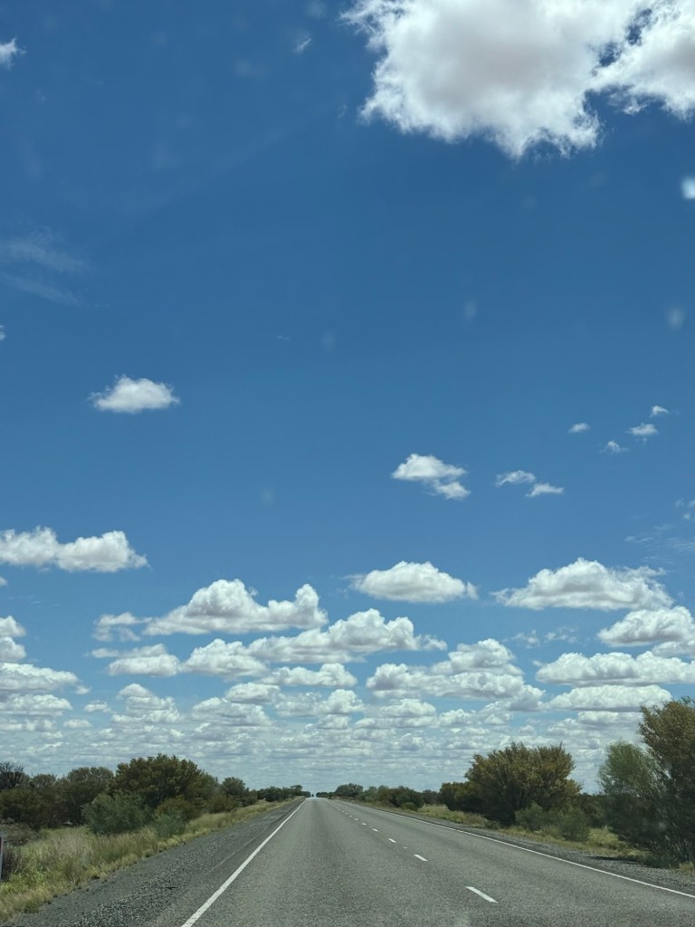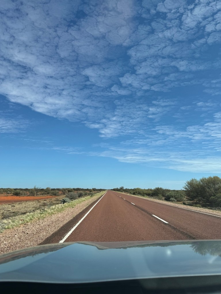 Nick and I listened to audiobooks while Millie watched movies. We finished In a Sunburned Country, which ended chronicling his journey on the very road we were driving. It was the perfect listen for this drive and helped the time go by quickly. We started Songlines, which is a recommendation from my dad and so far also very fitting for where we are.