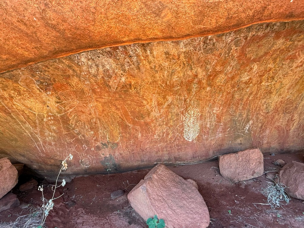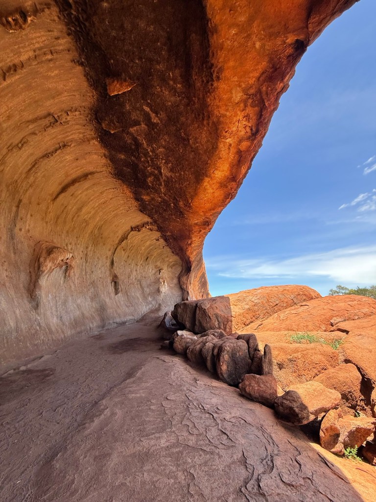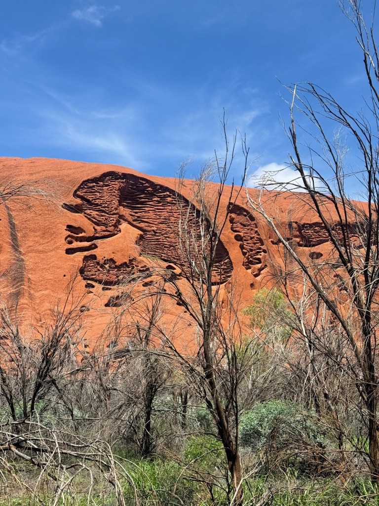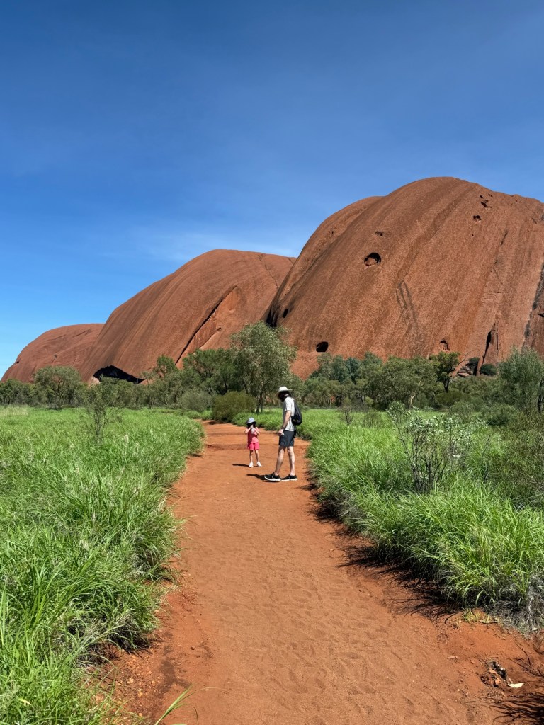 It was beautiful and I’m so glad we did it, but it did take a lot out of us. I applied sunscreen twice and still somehow fried my shoulders. In the end we walked the full circumference of Uluru—over 6 miles! It looked a lot smaller from afar.