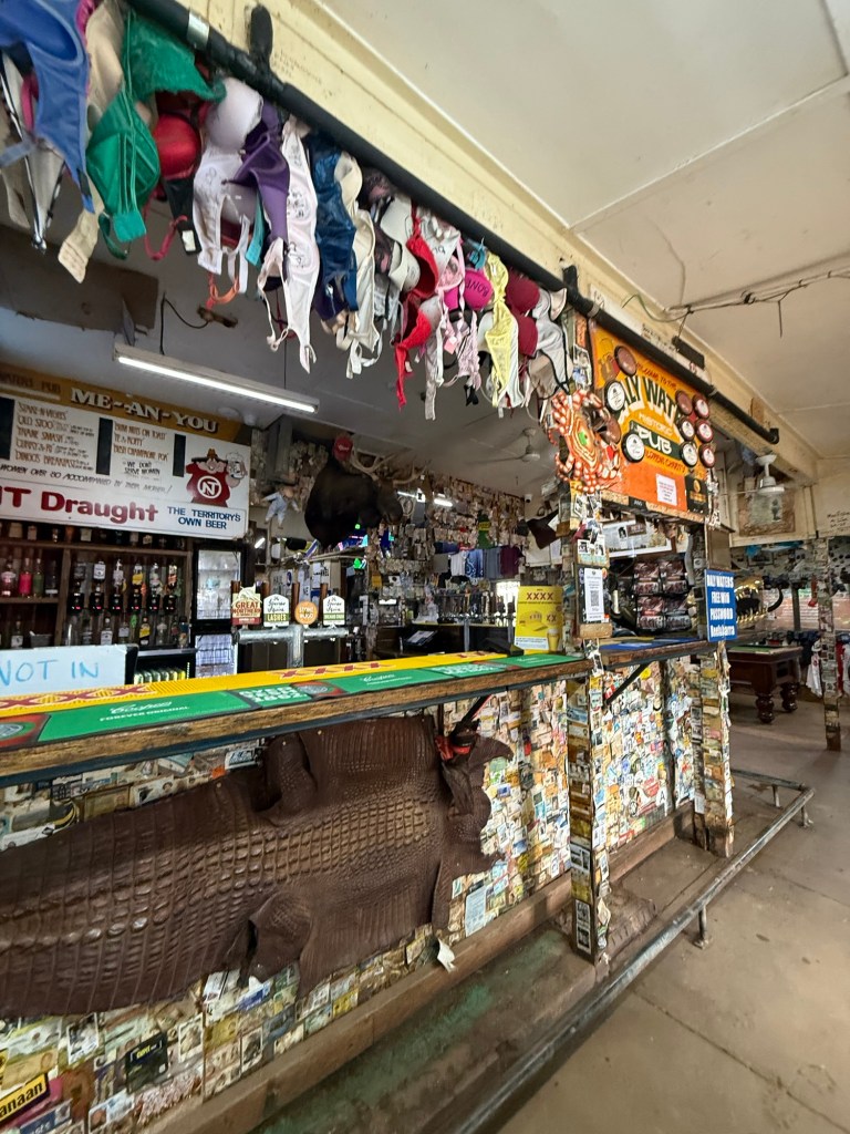 We arrived in Daly Waters. The claim to fame here is that it’s the first international airport in Australia because when commercial air flight started, they’d need to land here to refuel. These days it is home to the Daly Waters Pub, where we are staying for the night.