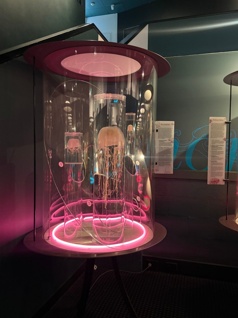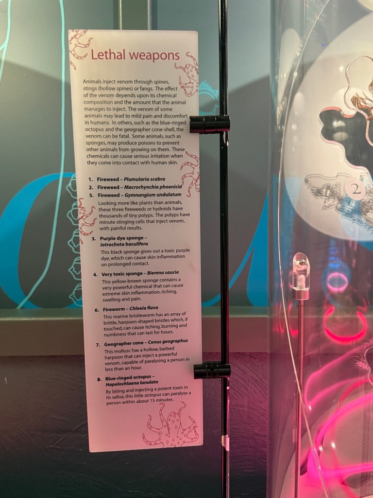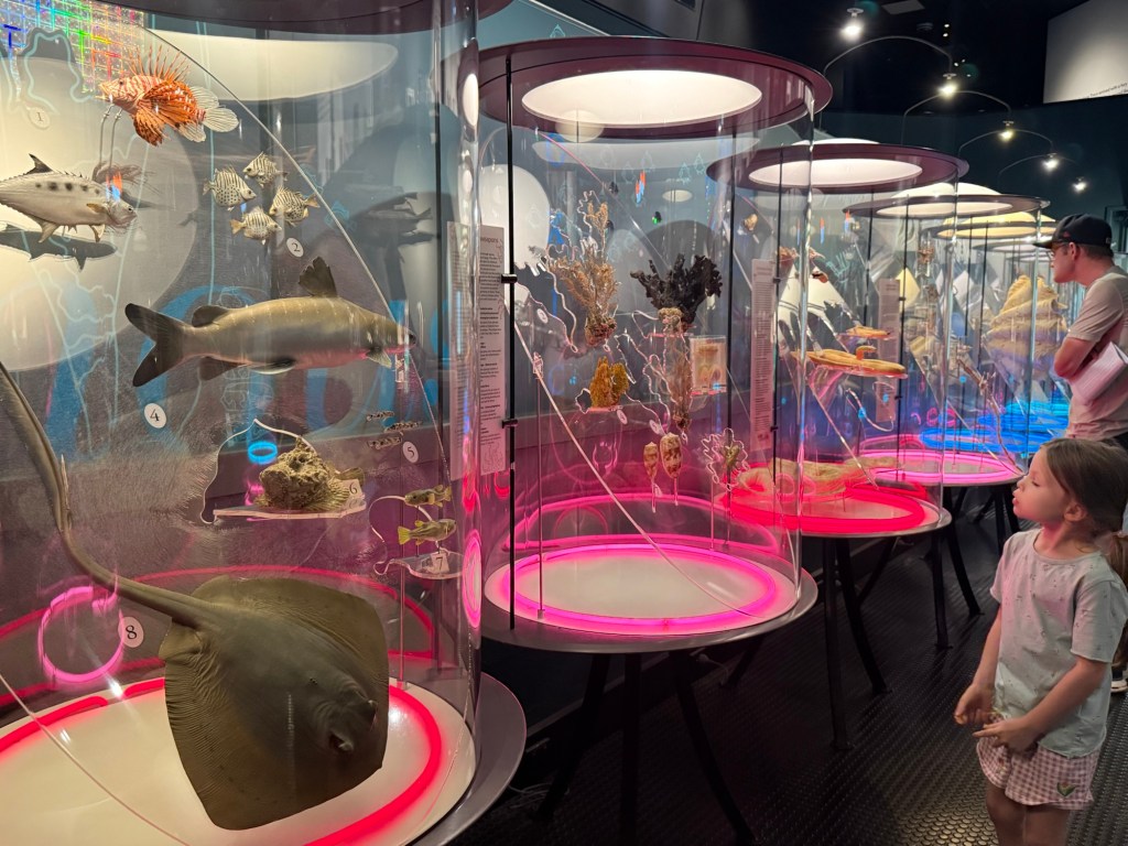 The main hall was dedicated to natural history of the area: fossils and taxidermy and the like. Walking from each item to the next was like “this can kill you” “this paralyzes you but doesn’t kill you… usually” “this will definitely kill you.” They had specimens of deadly box jellyfish, blue ringed octopus, a taipan snake, and all the deadly Aussie spiders.