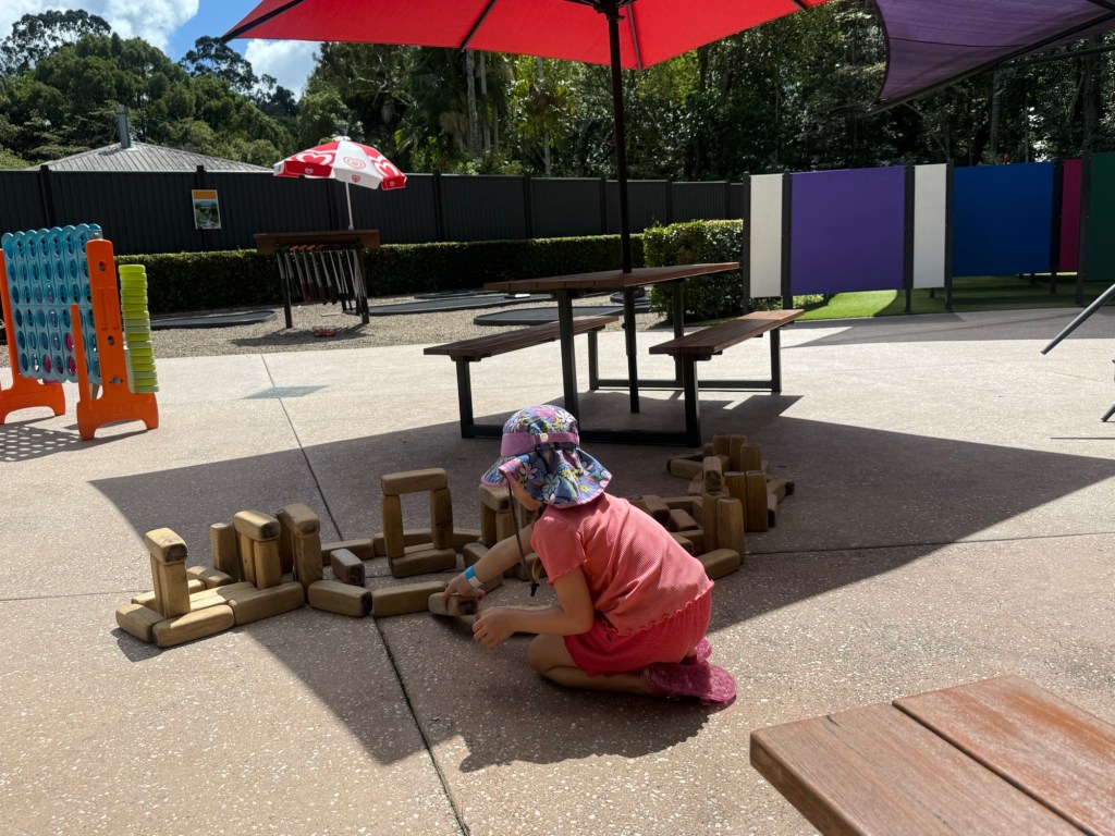 She spent a while building a castle out of jenga blocks.