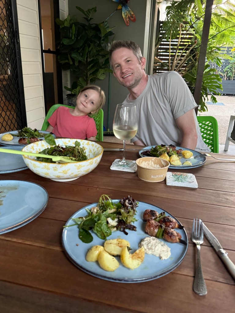 For dinner I grilled lamb kebabs and made a salad and some simple potatoes. We ate outside and just had a generally nice time together.