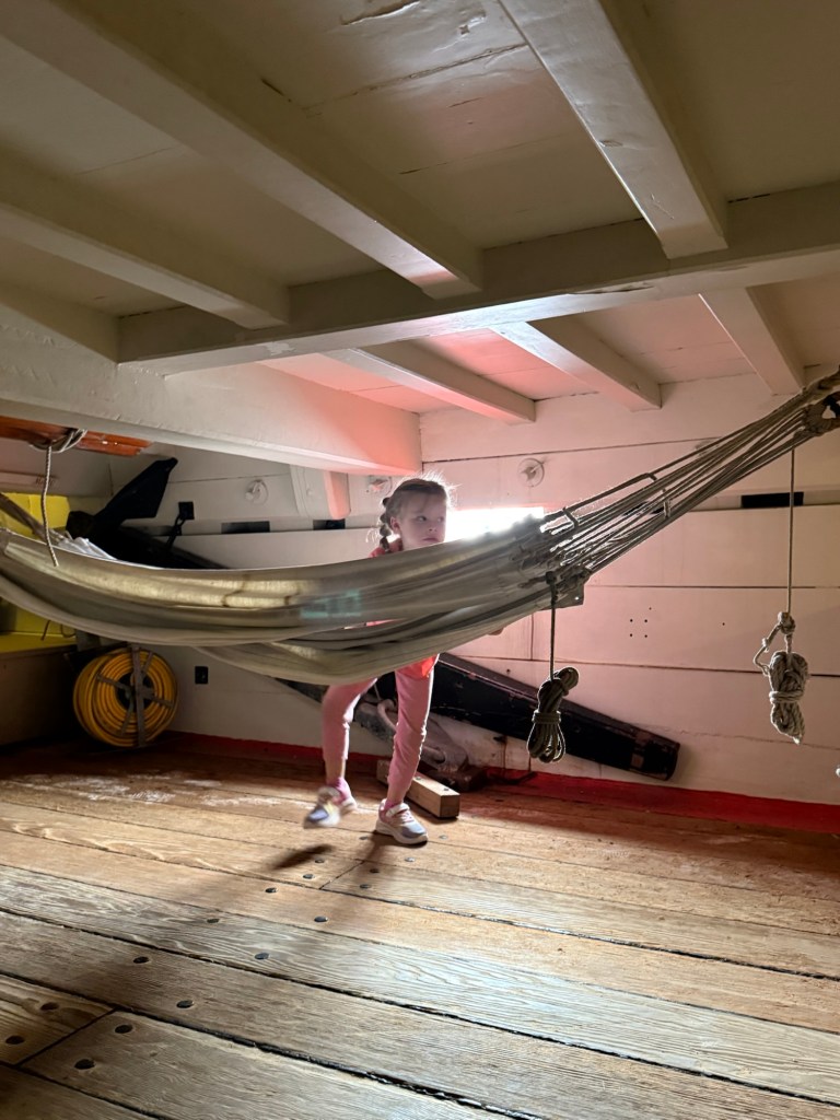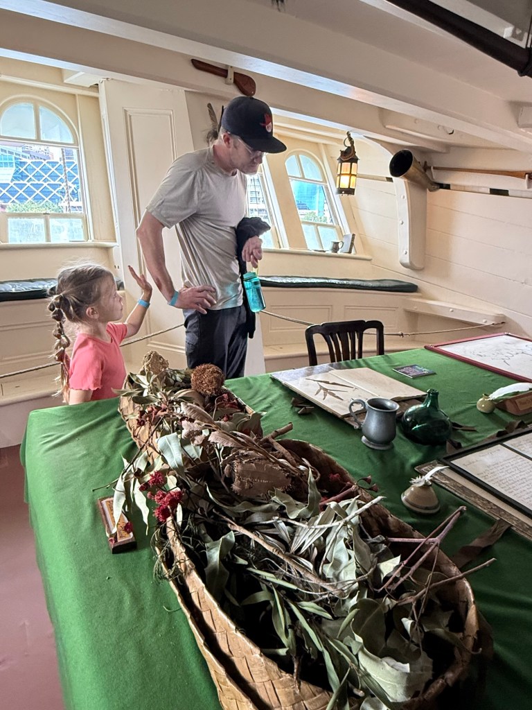 Then we went onto the recreation of the Endeavor ship, which originally “discovered” Australia. We all loved this. There were sweet old men everywhere, volunteering for the museum and enthusiastically answering questions from 5-year-old girls and 41-year-old dads. Millie had a million questions and they were beyond happy to answer them. Being able to physically explore and touch everything made all the difference for her.