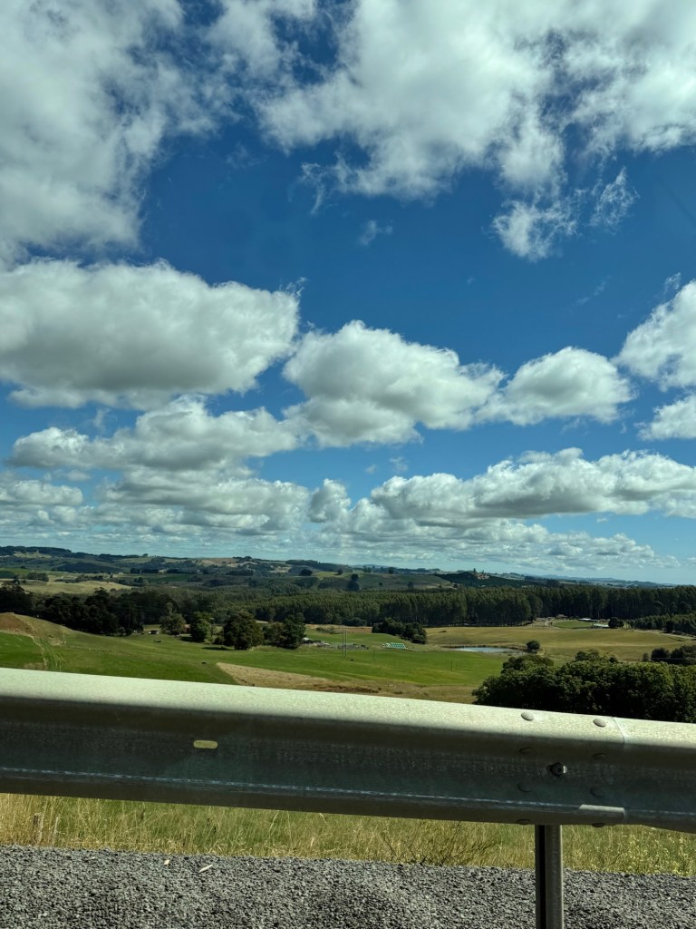 As we left we talked about how much southern Tasmania felt like Colorado. Then we climbed up and went through mountain ranges, then down into valleys that felt like California, and finally, we were driving along rolling hills of farmland full of bright green grass and cows.