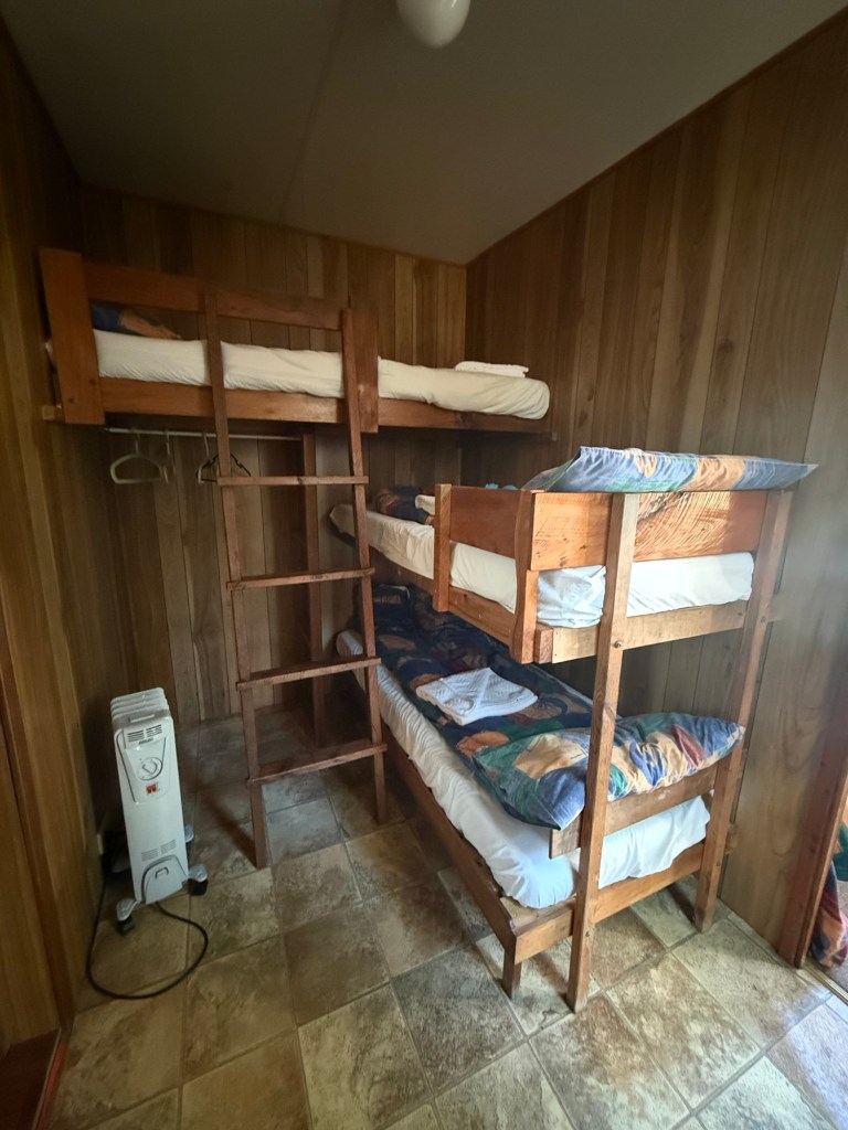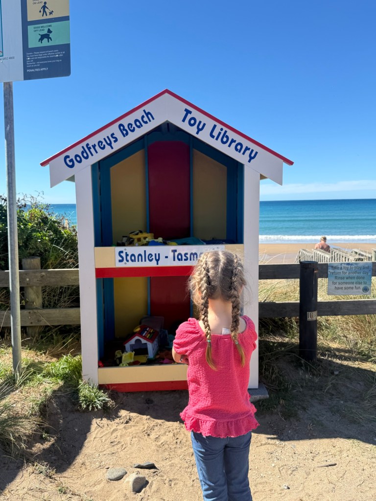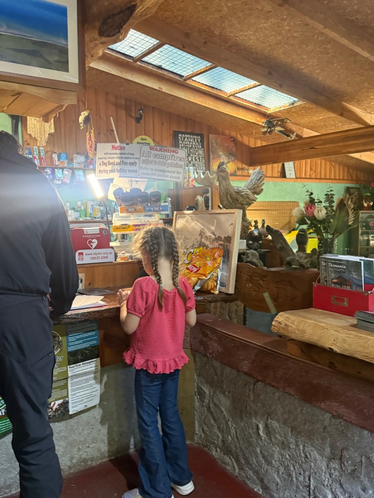 When we arrived in Stanley, we were next to a bright blue ocean. We checked in at our little caravan park. This entire area was sold out when we booked and we got the last cabin available for miles. Millie was ecstatic about the triple bunk bed. To me it feels like somewhere that a serial killer might hide out, but will be fine for the night.
