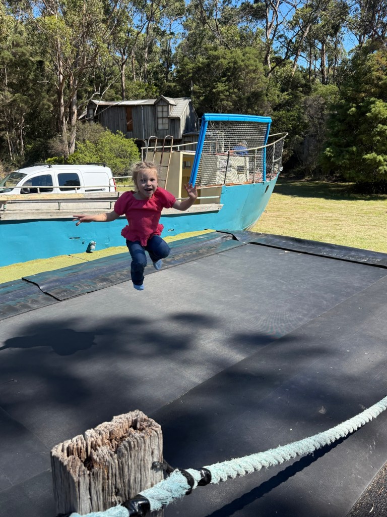 The place has a trampoline and a boat to play on, so she loves it. We spent some time exploring and jumping before heading out to explore Stanley.