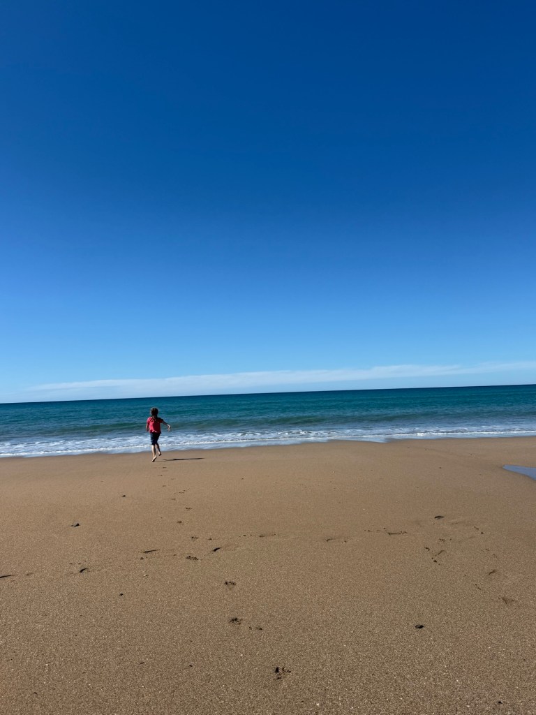 While working on our masterpiece Millie befriended a little boy and I got to talking to his aunt about how they recently moved here from “the mainland” to set up a homestead. They helped us build onto our village and then ran into the very freezing sea. We built some more.
