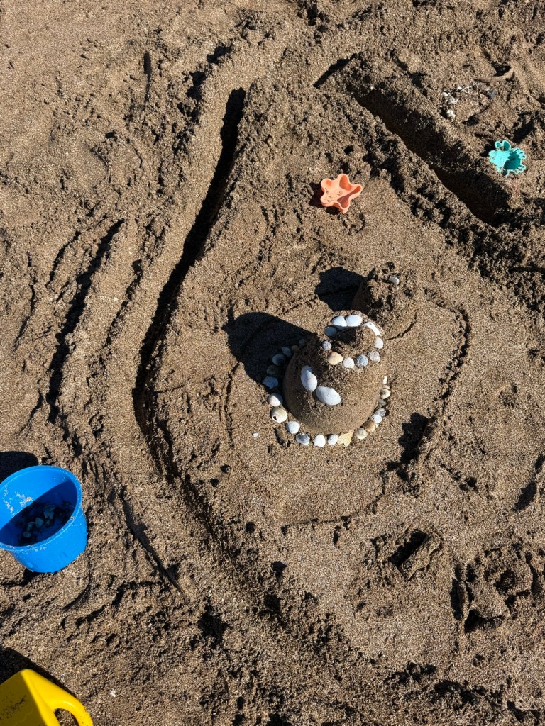 At the entrance they had this genius toy library, where kids could borrow some beach toys. Why doesn’t every beach have this? We borrowed a couple of buckets and shovels and got to building.