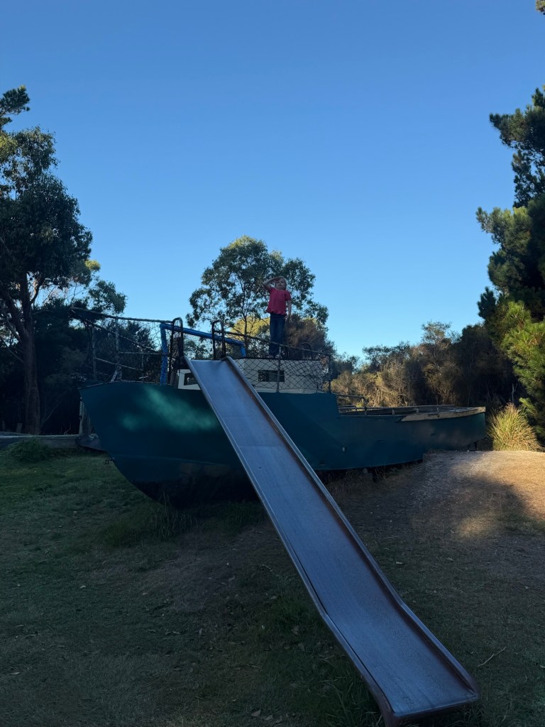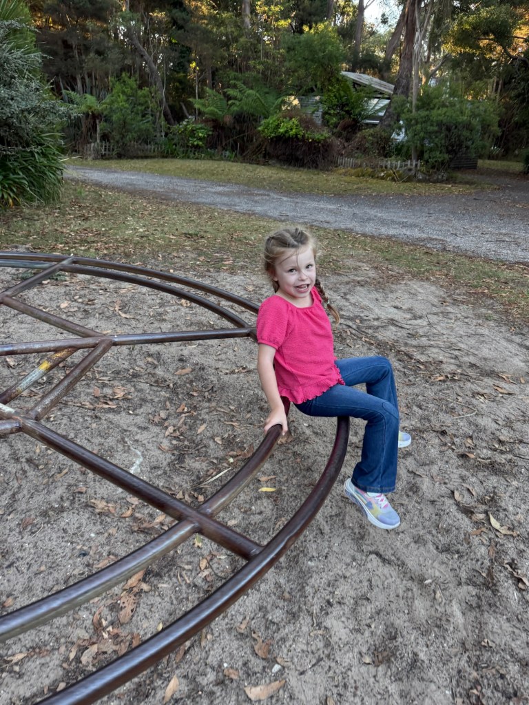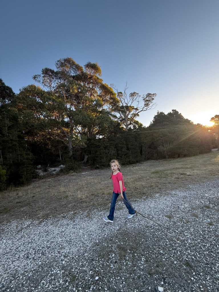 We came back and played some more. Millie and I went on a walk to explore the caravan park as the sun set.