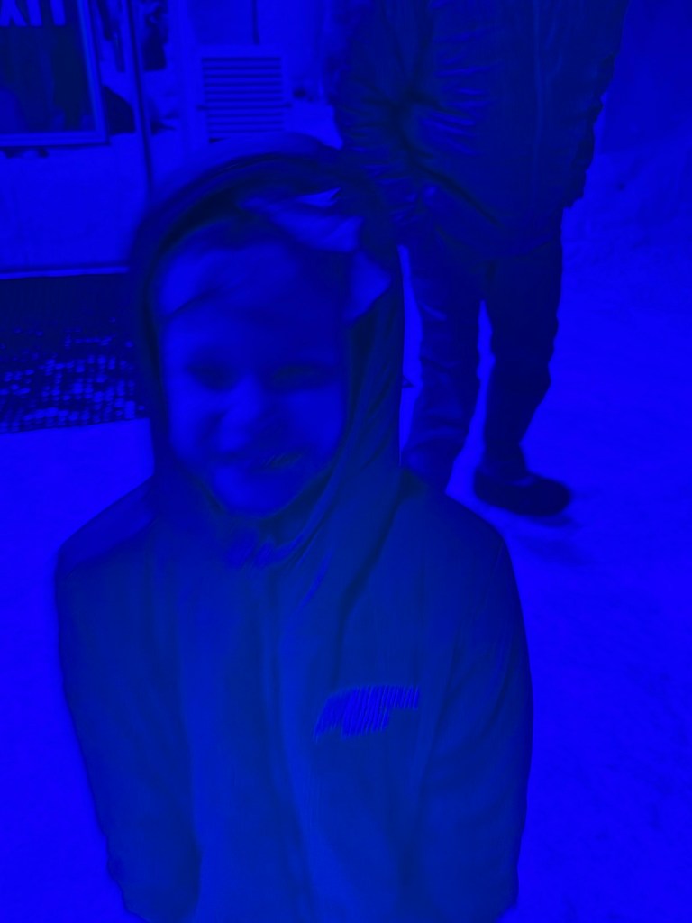 An ice bucket challenge where you see how long you can hold your hand in the freezing water. This was to mimic the penguins’ experience of swimming in icey water. Millie seems to have inherited my high pain tolerance and beat Nick.