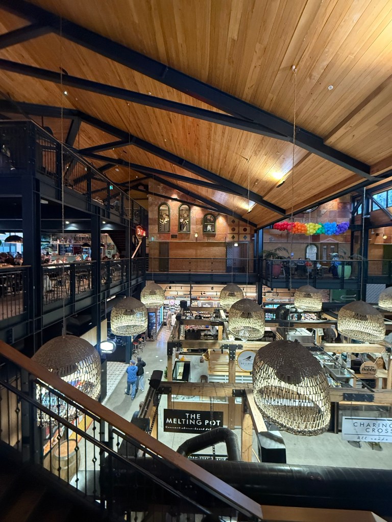 After the museum it was a bit early for dinner, so we headed back to yesterday’s playground to let Millie get some energy out. She played for a while but then fell, got embarrassed in front of her friend, and had a bit of a scream. I carried her to the car and we drove 5 minutes to the Riverside market for dinner. The market is a food hall that was built about 5 years ago, but feels much older. I love places like this but struggle with the amount of decision making they require.