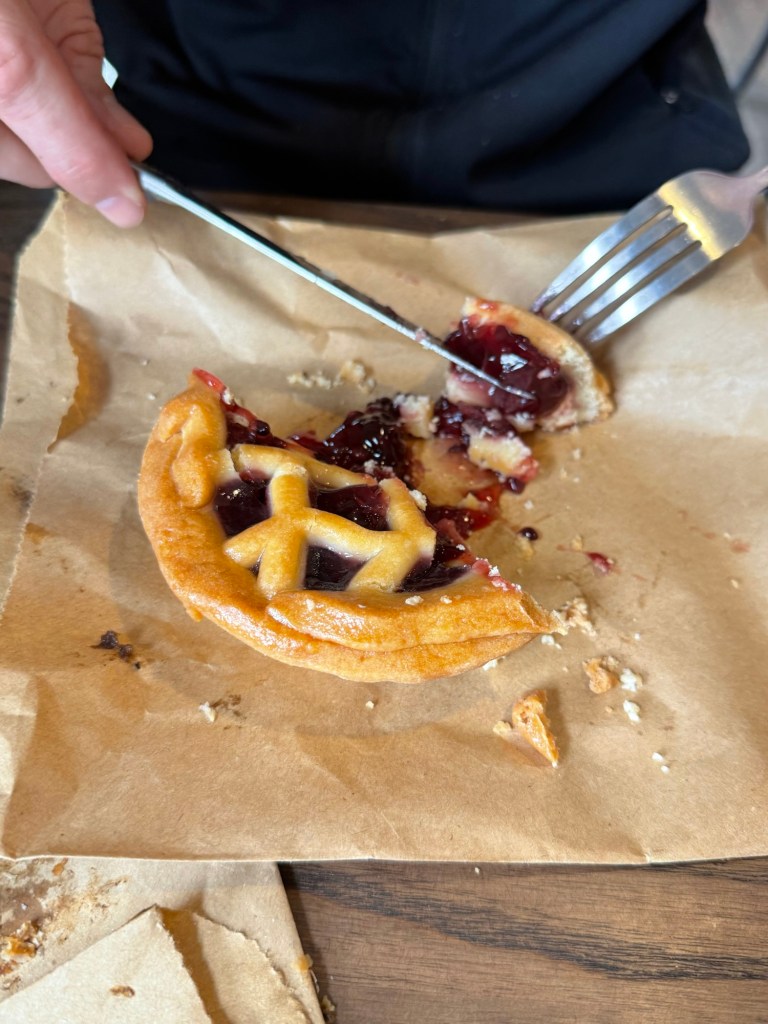 We got a traditional mince, a venison steak pie, a butter chicken (overall favorite), and a boysenberry. Terrible photos, yummy pies.