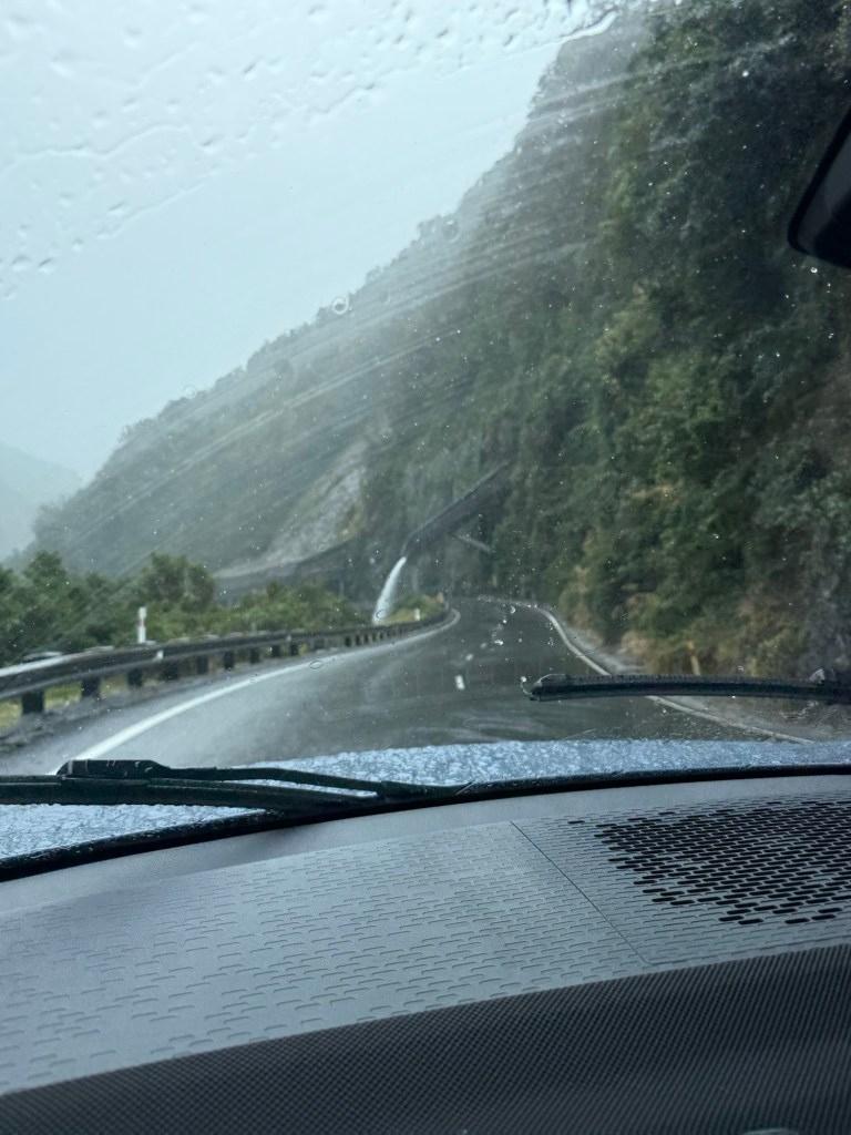 From here we continued our drive to Arthur’s Pass. We had a couple of places we wanted to stop for hikes, but the rain got worse and worse. This is known as one of the prettiest drives in New Zealand, but not so much when you are inside a rain cloud the whole time. We didn’t know the difference so were still pretty impressed