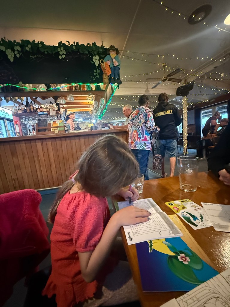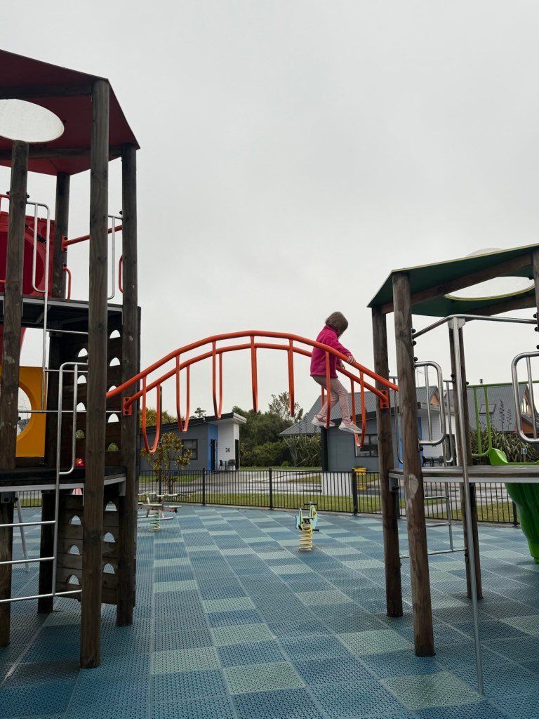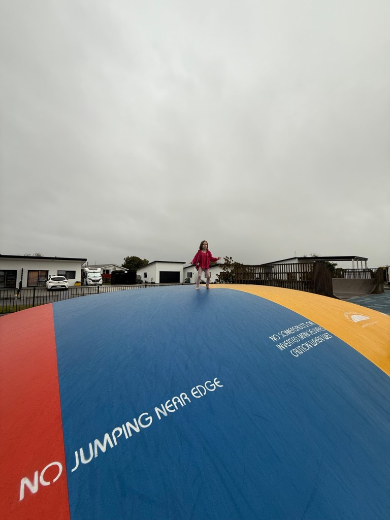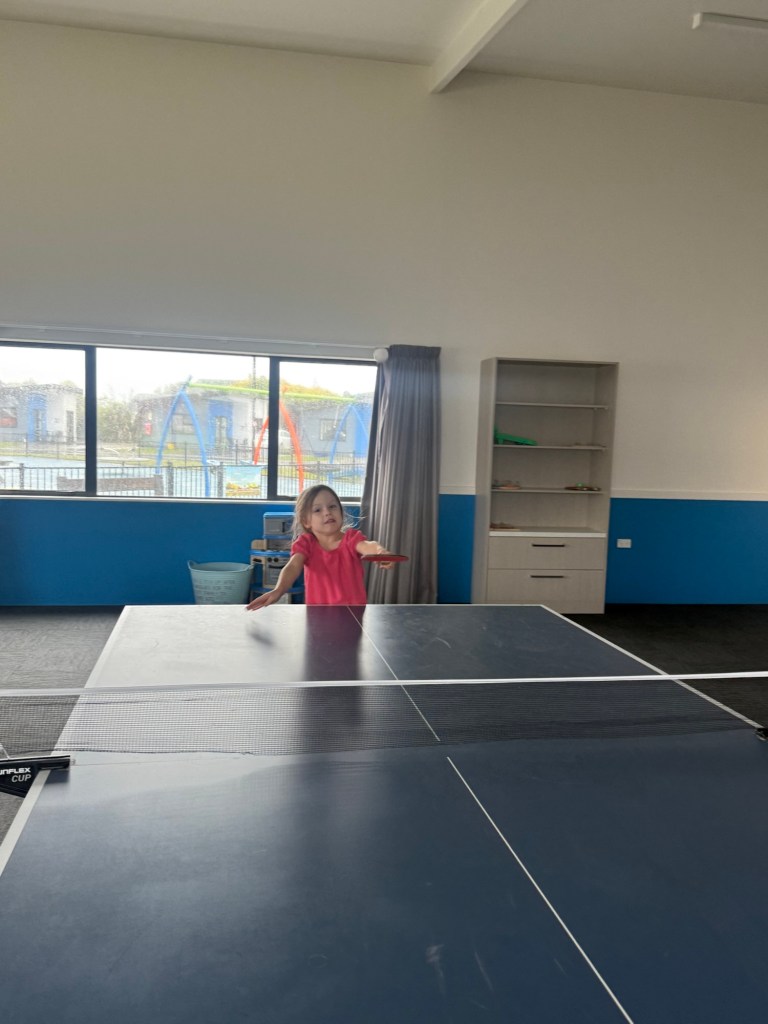 We skipped the hikes and drove right through to our hotel. We are staying at a caravan park. Millie and I killed some time playing ping pong in the rec room and testing out the very wet jumping pillow and playground.