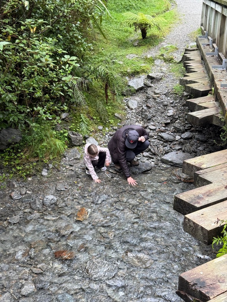 The first activity of the day was a short hike to see the Franz Josef glacier. Or what’s left of it, anyway. We almost skipped it but I couldn’t face another day of letting the rain win, so I rallied everyone to get out, even if it meant getting soaking wet.