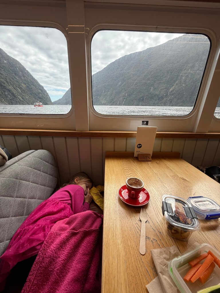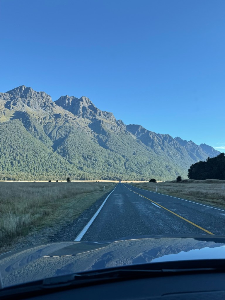 We had a big breakfast (foreshadowing) this morning and then set off for the 2 hour drive to Milford Sound. It’s been a lot of driving recently and we did not feel like spending more time in the car but today was the best weather on the forecast, so today was the best day for a visit to Milford Sound.
