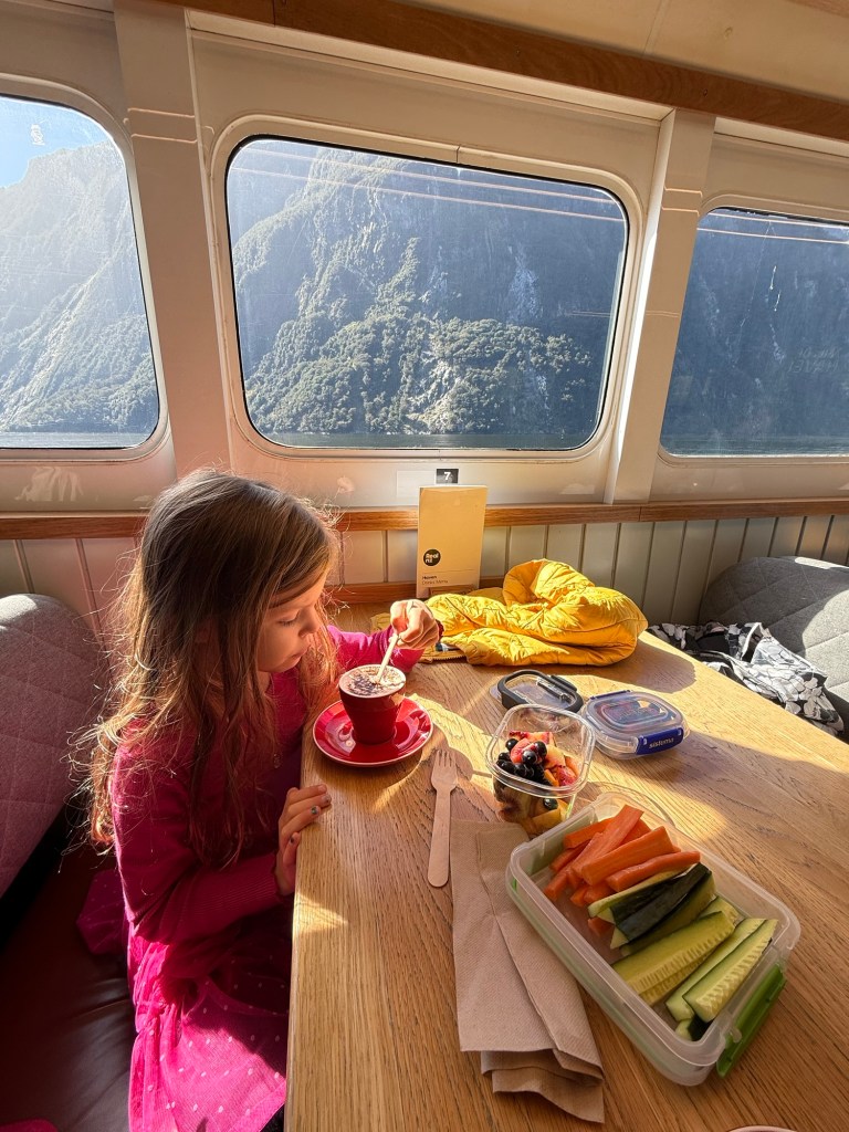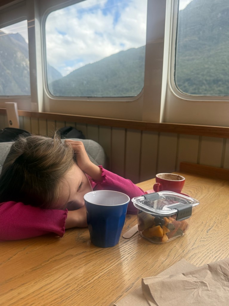 Once there, she continued to whine while we waited for our boat to board. I thought maybe she needed some food so I offered the many delicious things we had packed. No dice. We boarded the boat and the incessant whining continued. Nick got her a hot chocolate hoping to snap her out of it, but it continued.