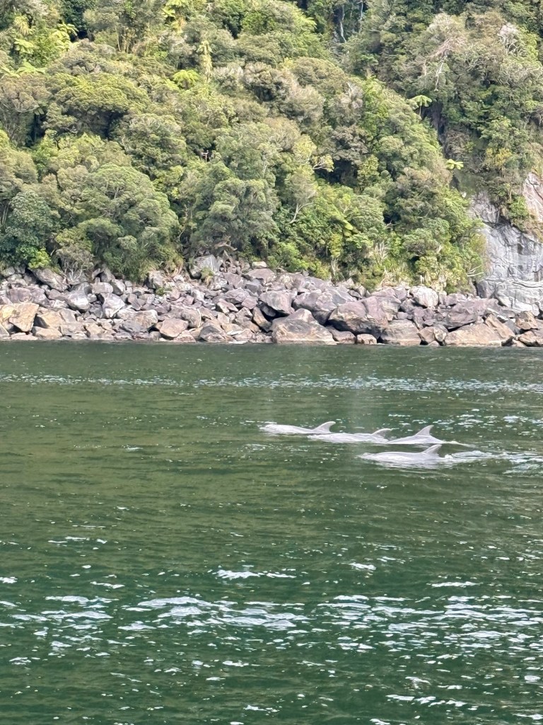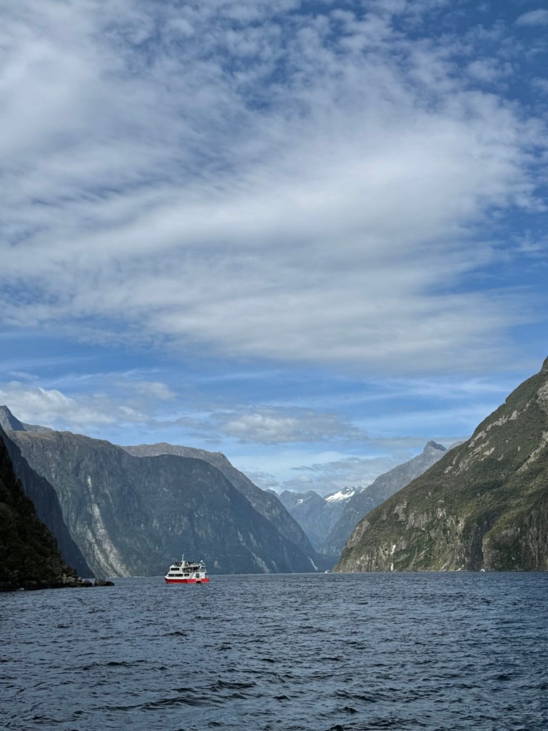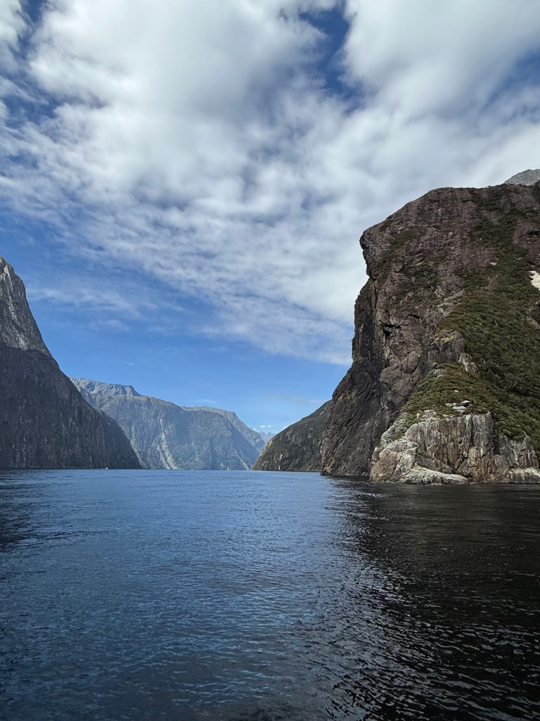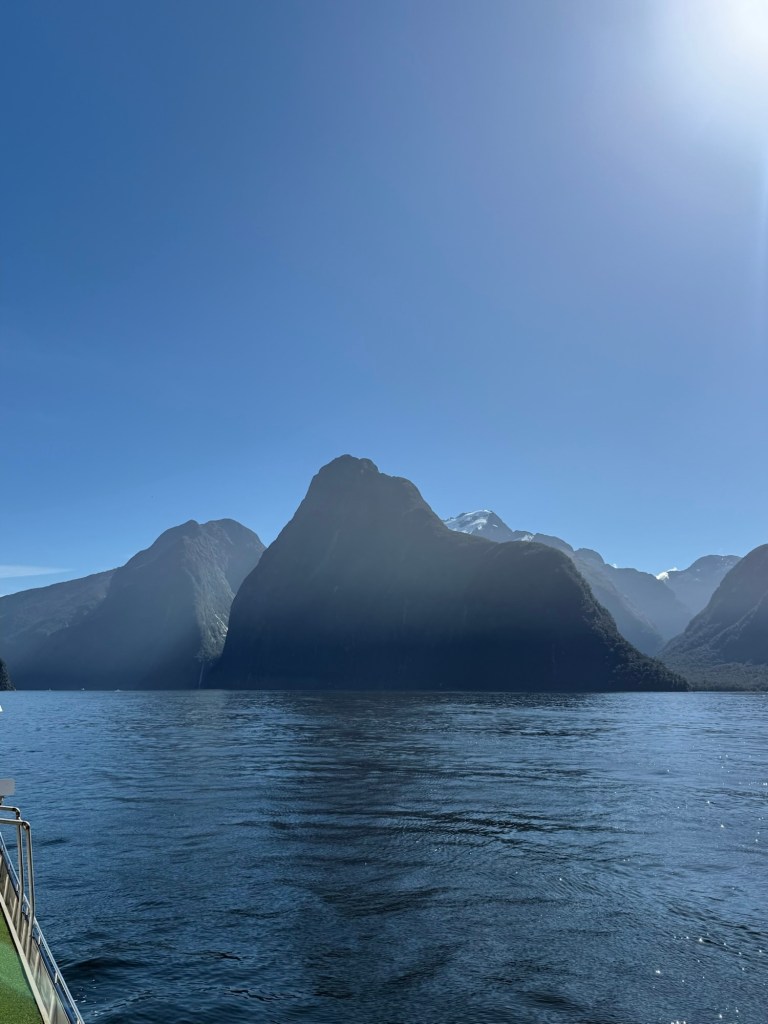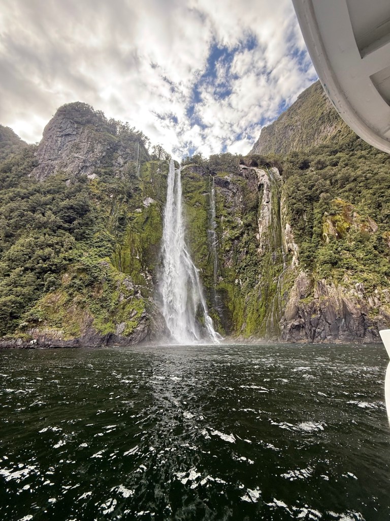 Nick and I took turns going to the bow of the boat to admire the scenery. The 2-hour tour took us from Milford Sound out to the Tasman Sea, past waterfalls and the mountains that surrounded us. It couldn’t have been a prettier day and the water was very calm.