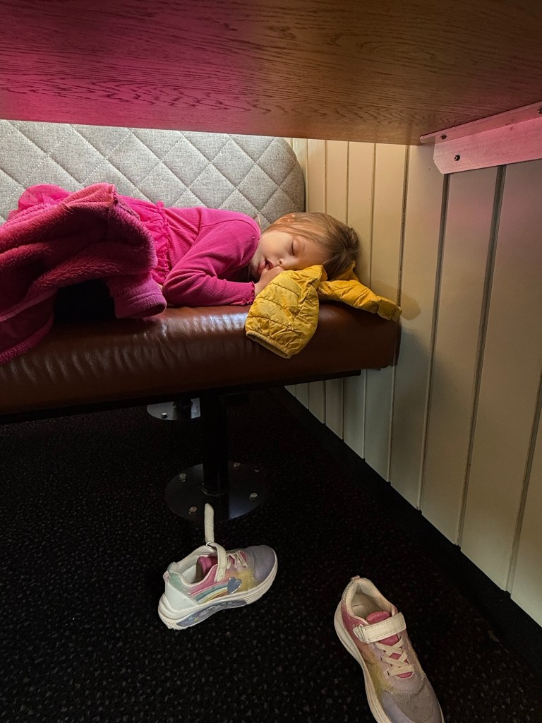 When she fell asleep on the bench of the boat without finishing the hot chocolate or eating the fruit we packed, we had a feeling we were dealing with more than just some car sickness.