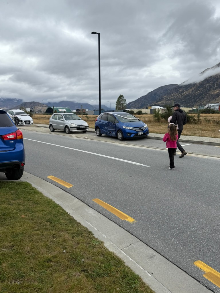 We overheard people talking about how the driver had made a run for it, probably because they were drunk. We went to investigate this morning and there were 4 completely demolished cars still on the side of the road, it was quite a scene!