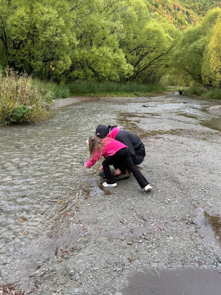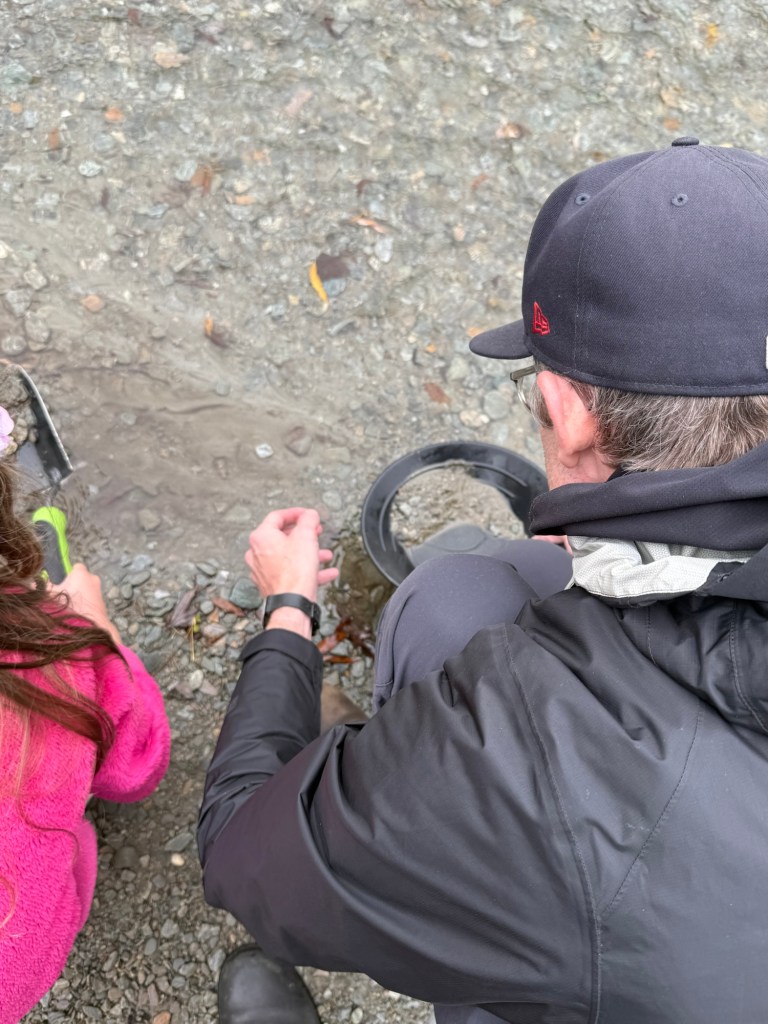 At the museum, we rented a little shovel and pan for gold. We went down to the river to see what we could find. It took us a while to get the hang of it but then we (mostly me and Nick) got really into it.