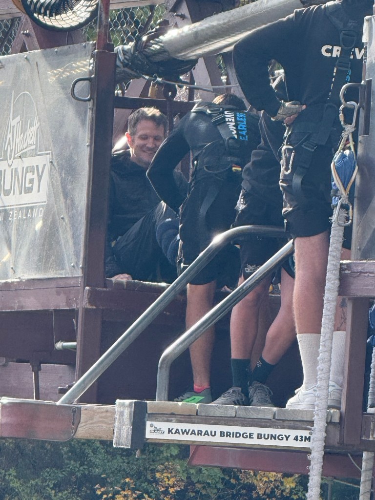 Nick took Millie in to get a snack and pee, and the next thing I know he’s signing his life away and paying to jump off a bridge. His attitude was “if we’re in the birthplace of bungee jumping, I might as well try it.”