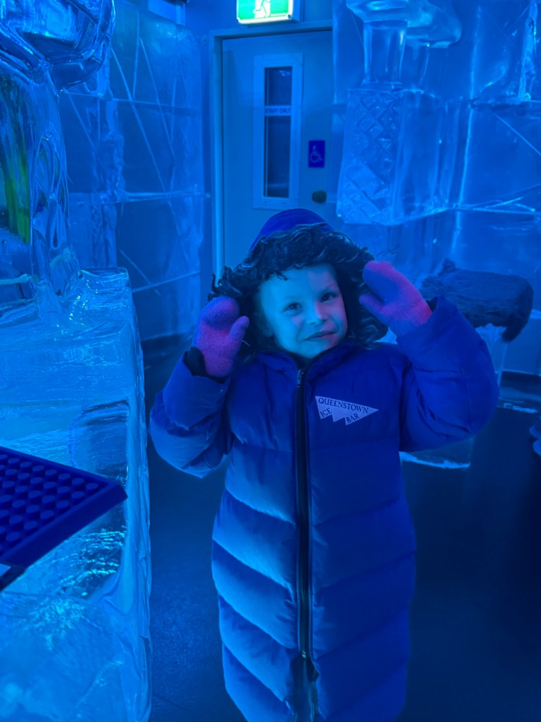 We took the gunjula back down to the base and began walking towards a playground we had heard all about from the parents we met yesterday. On our way we passed a sign for an “Ice Bar” and decided, yes, we must visit the ice bar. We paid way too much to get in and have one bad cocktail/mocktail each, but it was so worth it.