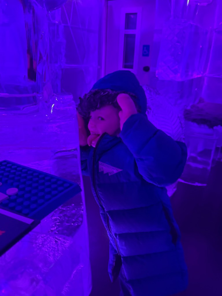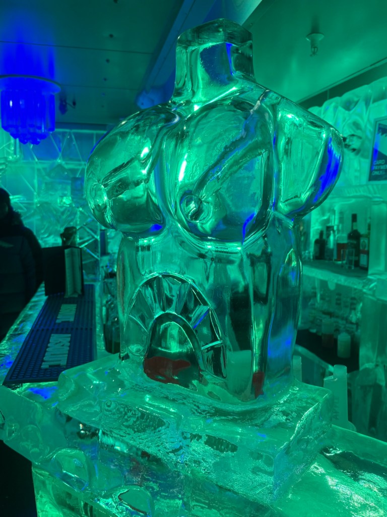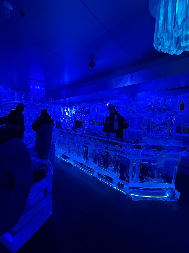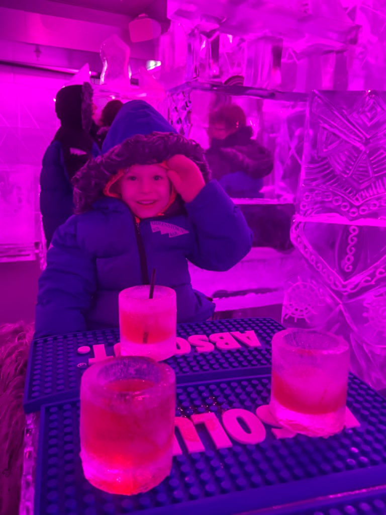 They gave us heavy coats and gloves and brought us down into the subzero bar that is made entirely of ice. Millie LOVED it and was running around laughing and touching everything.