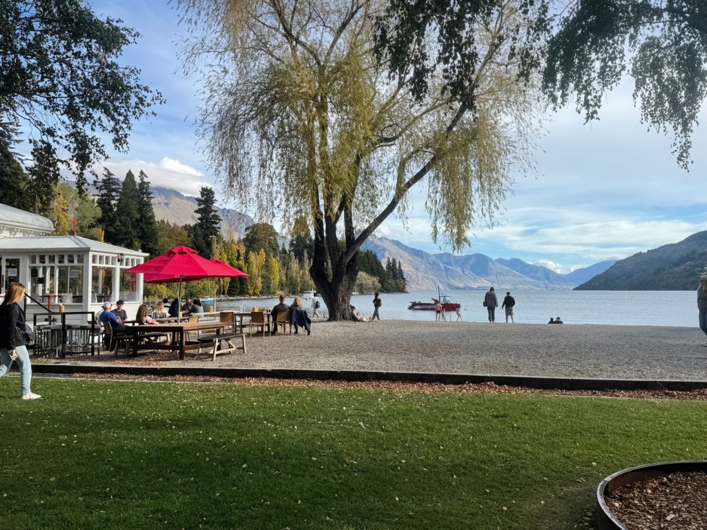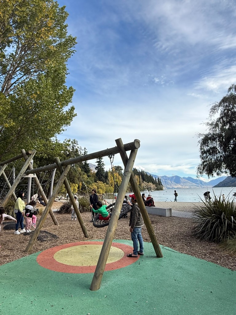 We walked through central Queenstown towards the playground. Most streets were pedestrian-only. It’s very touristy but also very nice. Cute shops and restaurants everywhere.