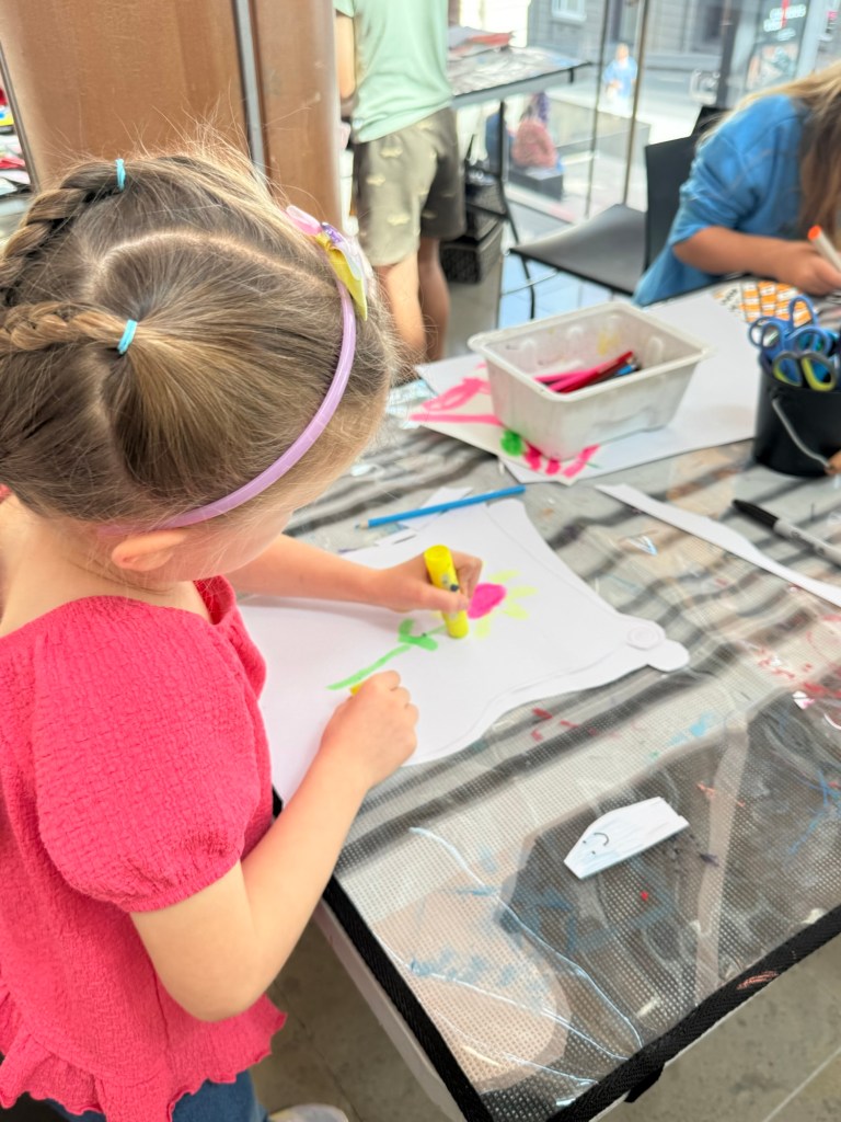 After this, they had a crafting area set up where kids could make vases out of paper. She did this for about 20 minutes while Nick and I traded off and went to look in some galleries.