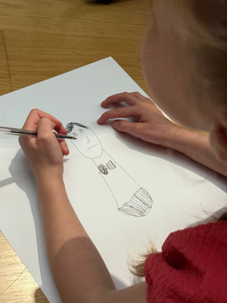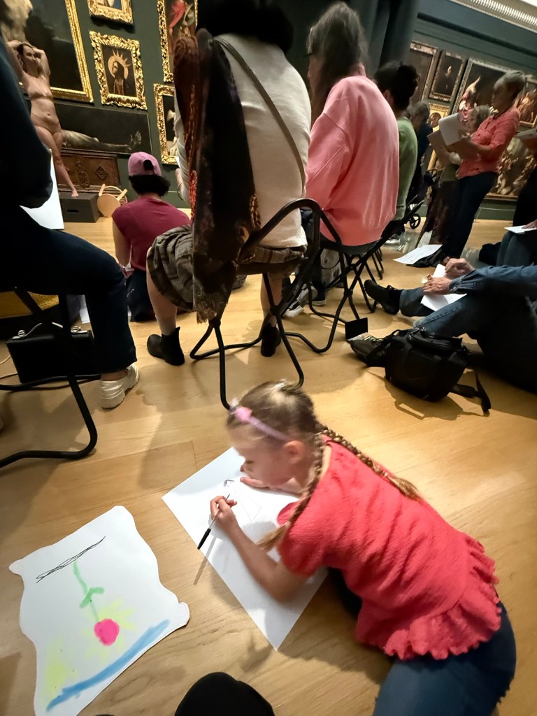 We discovered a figure drawing session for adults in one of the adjacent galleries. There was a model doing 5-minute poses, and about 50 adults surrounding her, quietly sketching away. Even though it wasn’t for kids, I knew it would be interesting for Millie to see.
