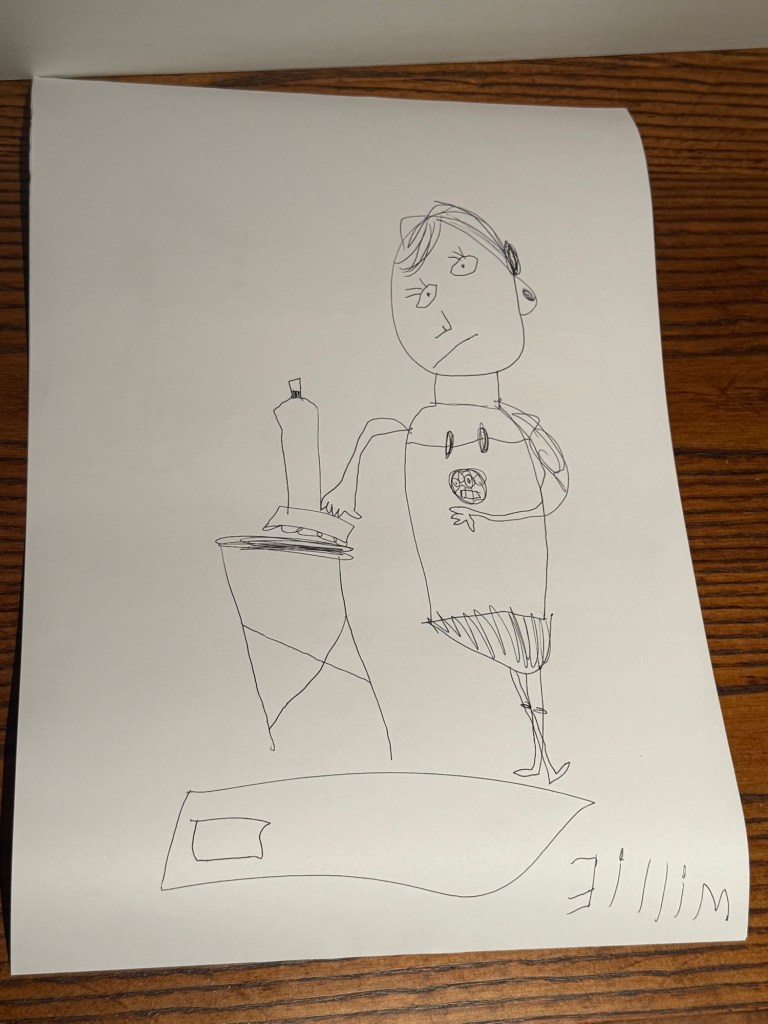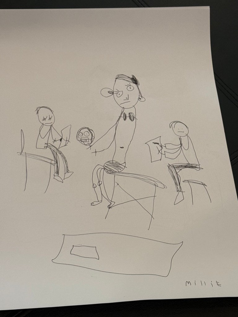 Millie, with Nick’s help, made Elsa. They put her high up on a wall.