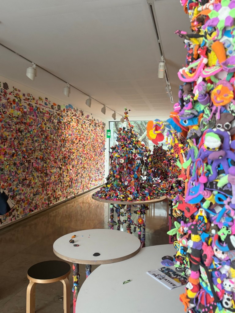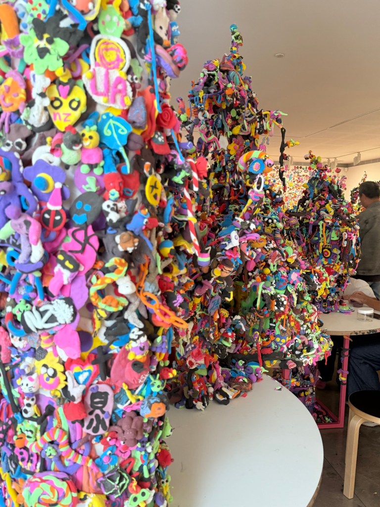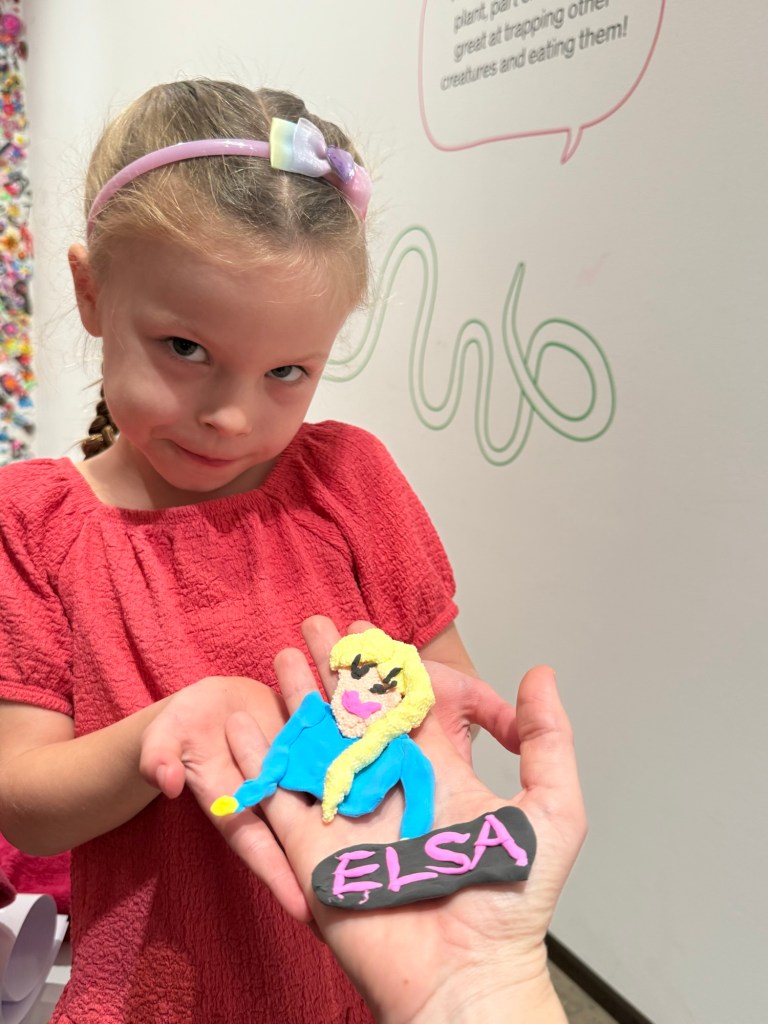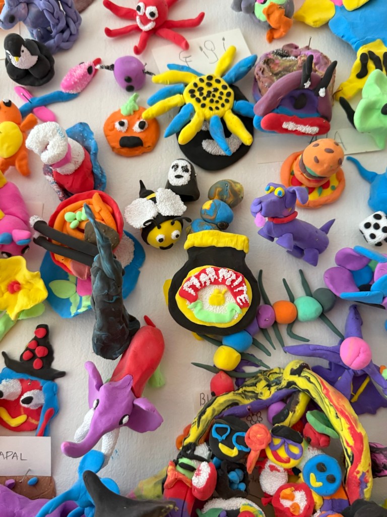 Believe it or not, there was one more amazing thing for kids. It was a collaborative sculpture gallery. We first spent a while admiring the details of what everyone else had done, and then got a small box of clay to add to it.