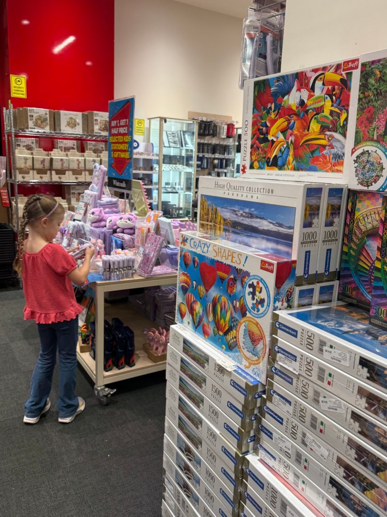 We walked around a bit looking in bookshops (browsing an independent bookstore has to be up there with one of life’s best experiences) and getting some new workbooks for her.