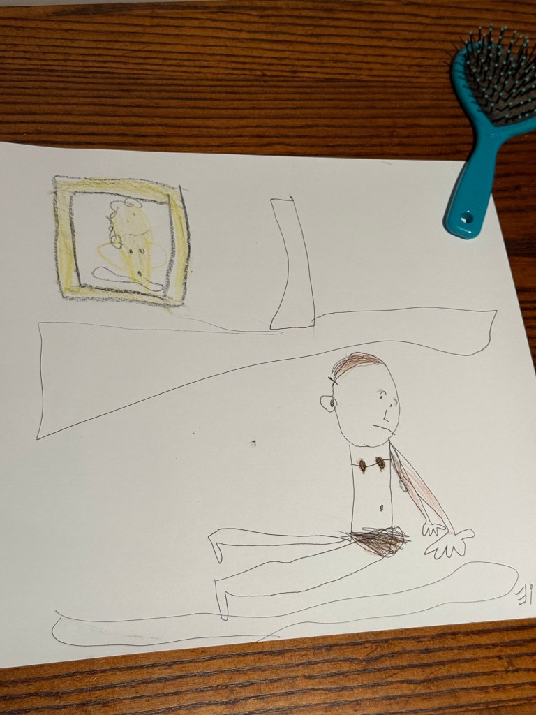 Once the figure drawing was over, we used the museum’s art game to explore another gallery. The premise is that you have two dice that you roll, and then with the results you are pointed to prompts in a little book. One was “walk around and find your favorite piece of art, then take a picture of it and see if your parent can find it”. Another was to have your parent explain the art to you with your eyes closed, and then look at it and see if it’s what you had imagined based on the description.