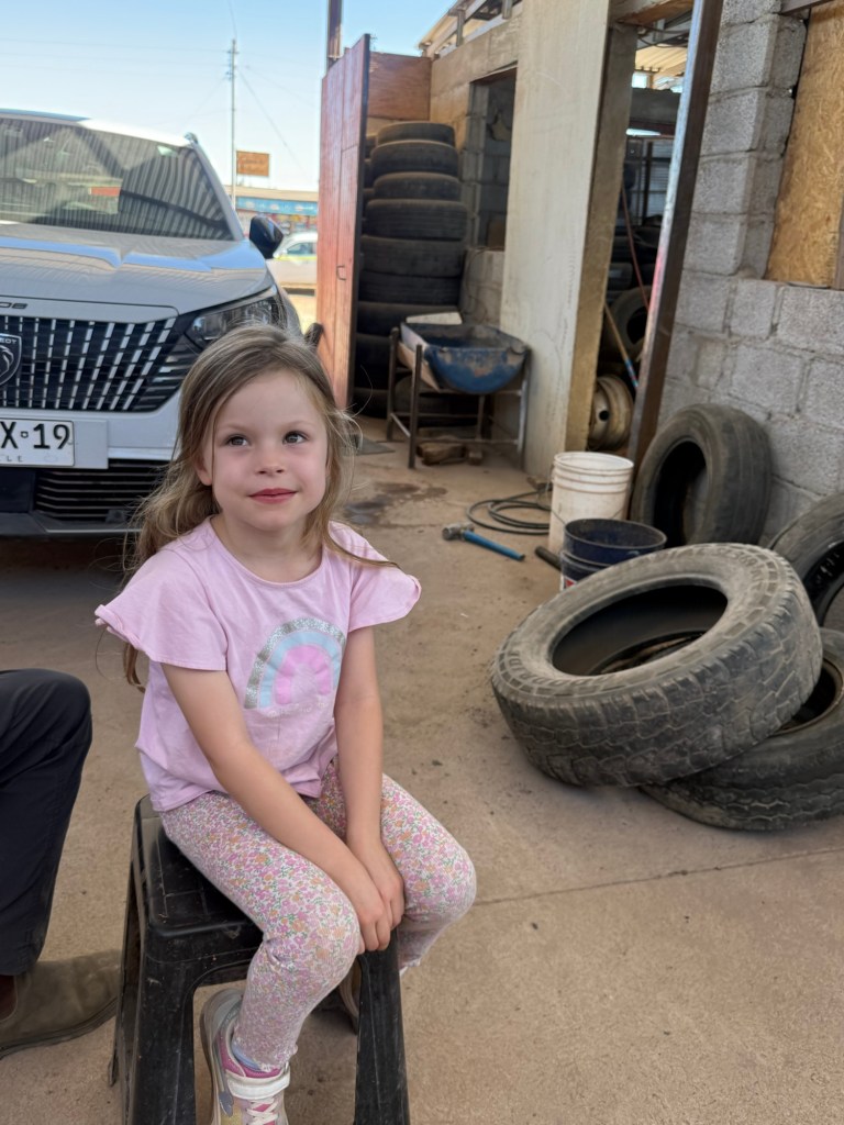 And second, Millie was SO GOOD. When we first noticed it was flat we were understandably frustrated and stressed, which can set her off, but we all took some deep breathes and just dealt with it. We pulled over to the side of the road to make our phone calls and she sat calmly and quietly in the backseat while we worked it out. At the tire shop she watched how he worked and asked questions, and then joked around while we waited. I’m not sure if it’s that the trip has toughened her up, if it’s her age, or if we just caught her on a really good day. Probably all three. Whatever it was, we were so proud of her.