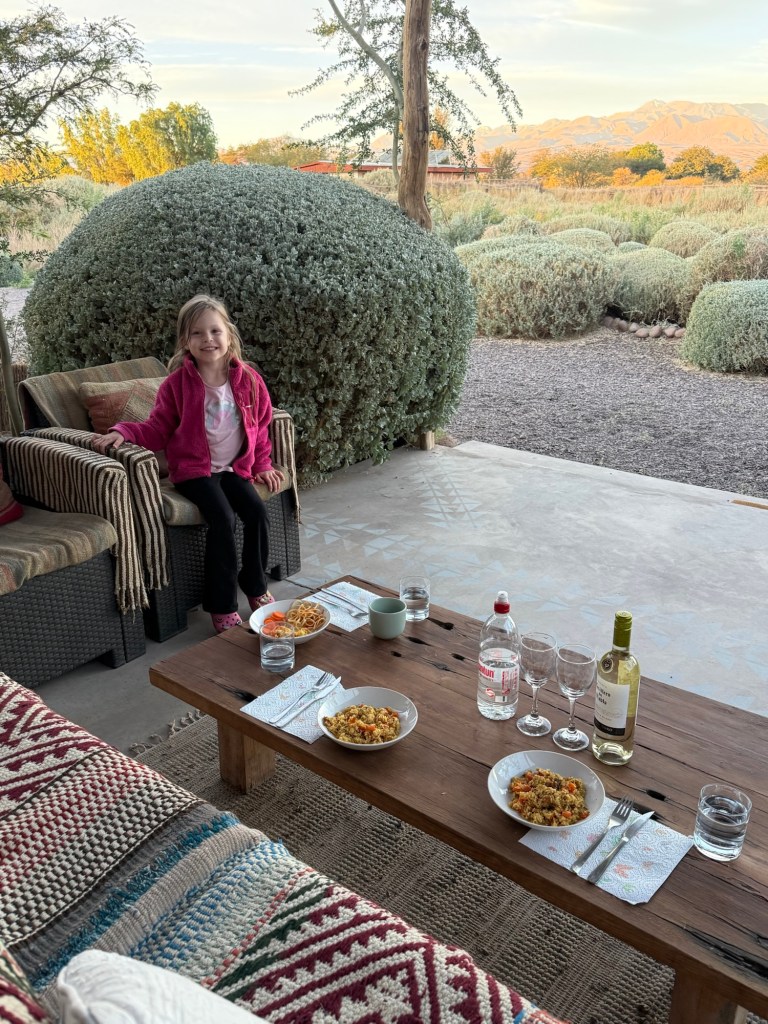 When it was ready she cleaned everything up and set the table. She was so proud of her work and brought us both outside as if she was a restaurant hostess.